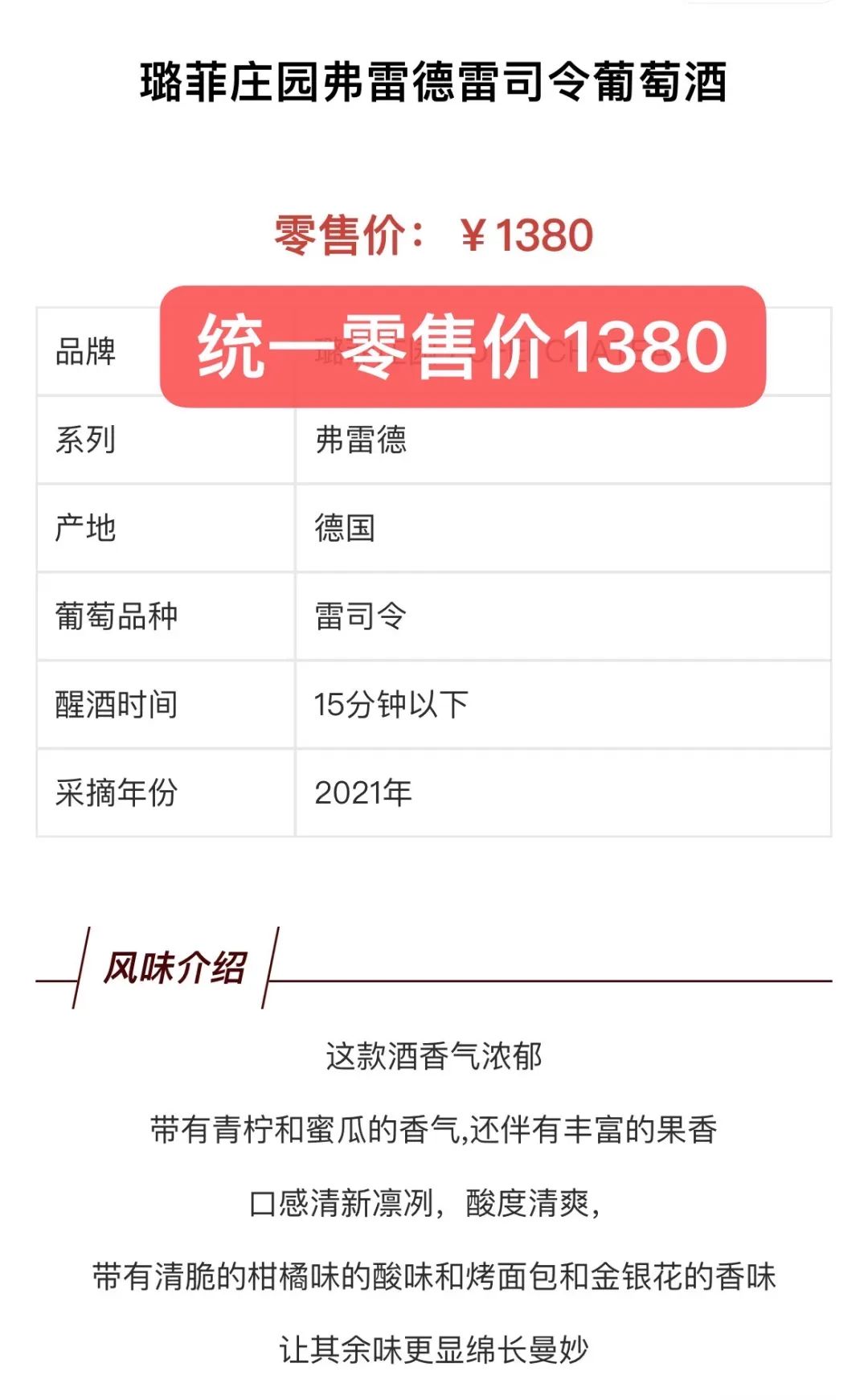 最后再强调一下,我们郑重承诺所售卖的璐菲庄园弗雷德雷司令白葡萄酒: