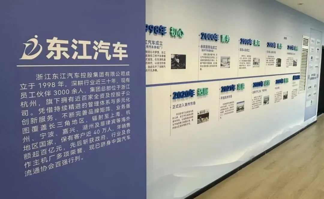 浙江东江汽车控股集团成立于 1998 年,总部位于杭州,现有员工 3000 余人,旗下近百家子公司,年销售额超百亿元,稳居中国汽车流通行业百强。 集团主营比亚迪、腾势、方程豹、极氪、领克、吉利、长城、小鹏等主流新能源与自主品牌,布局二手车、金融分期等全产业链业务,构建汽车全生命周期一站式服务,业务覆盖长三角并拓展至海外市场,服务客户近 40 万。 集团坚持 “品牌中国化、产品智能化、渠道城市化、人才年轻化” 战略,以 “卓越服务,创造美好车生活” 为使命,秉持真诚、务实、拼搏、创新的价值观,致力成为客户信赖、员工成长、行业领先的汽车服务集团。