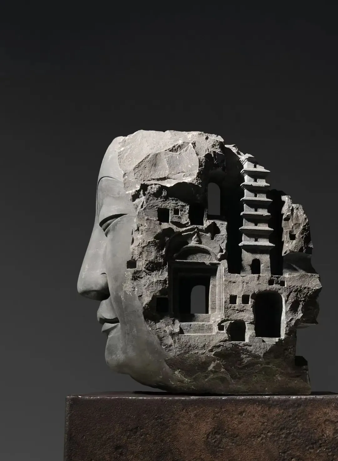 阳新以其深厚的学术背景和独特的艺术视角, 将中国传统雕塑艺术的精神内核融入当代创作, 形成了古朴、沉静且充满时间厚重感的艺术风格。阳新的雕塑作品以 "汲古为今” 为核心, 既传承了中国古代雕塑艺术的精髓, 又赋予其当代审美的表达。采用古人常用的石料与传统雕刻技法,通过有温度的双手, 将冰冷的石头转化为充满生命力的艺术品。 阳新试图从宇宙的视角重新探究中国文化中人与自然 “天人合—"的哲学思辨, 以纯粹的美感重视生命个体平静、善良、 包容的美好。