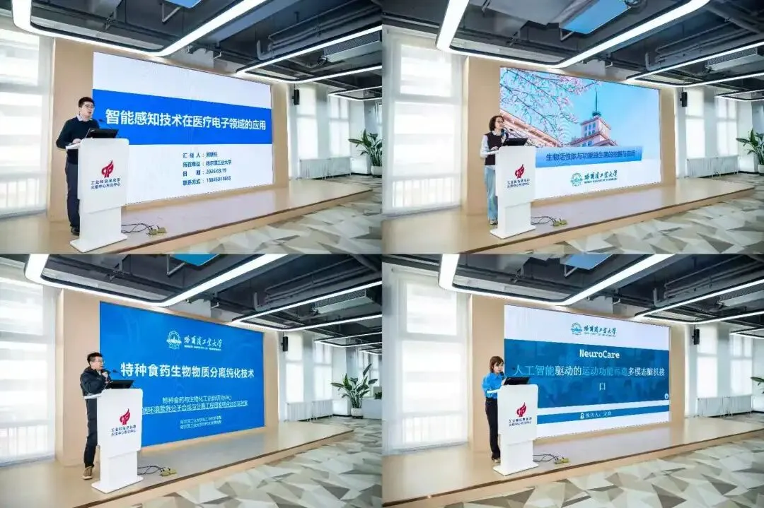 活动现场,戴石副主任登台致辞,夏维副主任讲话发言,哈工大专家团队依次登台,围绕智能感知技术在医疗电子领域的应用、生物活性肽与功能益生菌的挖掘与应用、特种食药生物活性物质分离纯化技术、多模态脑机接口项目进行推介。各项成果技术成熟度高、产业化基础扎实,与高新区生命健康产业发展方向高度契合,兼具技术先进性与市场应用价值,现场企业、银行机构代表反响热烈,展现出强烈合作意向。