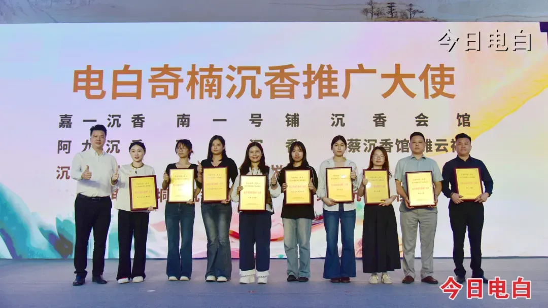 现场还开展了官方权威颁奖环节,表彰为电白奇楠沉香源头好物推广、文化传播、产销转化作出突出贡献的各界人士,并授予其“中国好沉香推荐官”“电白奇楠沉香推广大使”称号,进一步凝聚产业发展合力,提升电白奇楠沉香品牌影响力。