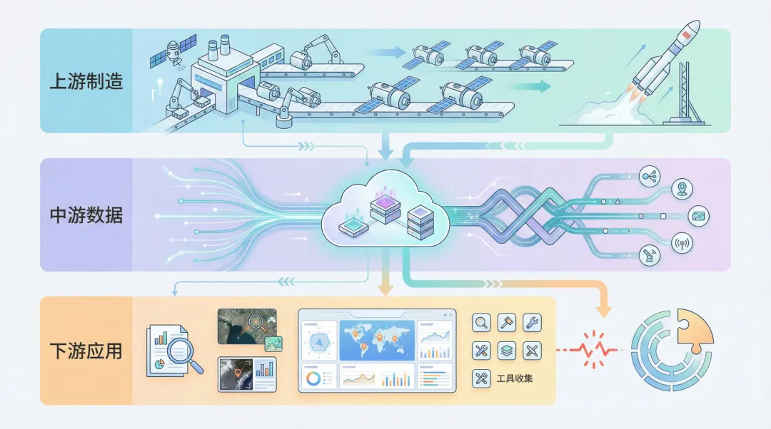 空天产业形成三层结构:上游制造 → 中游数据 → 下游应用