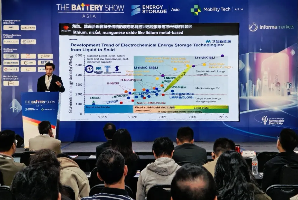 展会期间,卫蓝新能源市场部总监徐航宇博士受邀发表主题演讲。他以专业的视角、前瞻的洞察,深入解读了固态电池的技术突破与产业化路径,赢得现场阵阵掌声,更引发了与会嘉宾的热烈讨论与广泛关注。