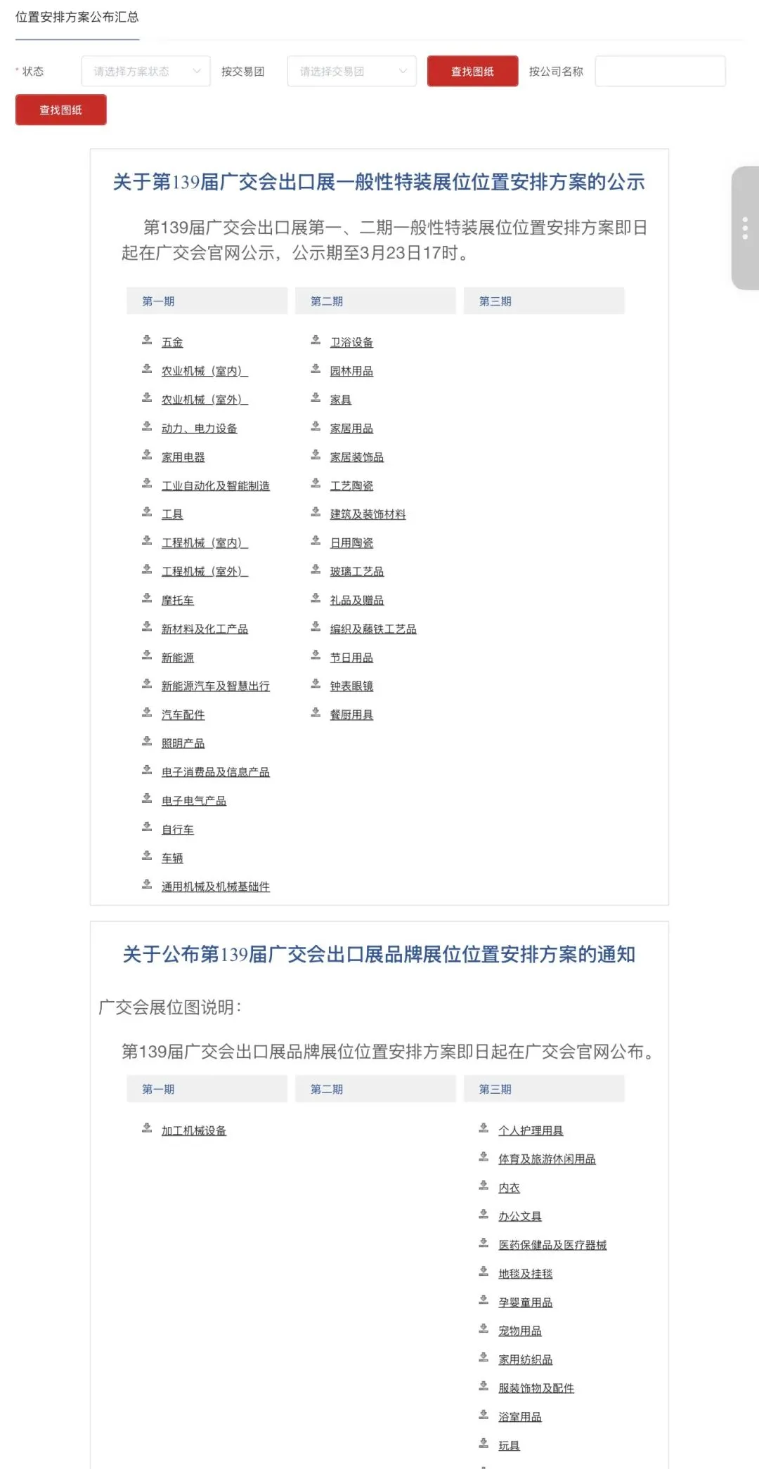 第139届广交会出口展第一、二期一般性特装展位位置安排方案即日起在广交会官网公示,包括以下两部分内容: 一是一般性特装展位位置安排方案图,公示网址为:https://exhibitor.cantonfair.org.cn/#/publishSum; 二是包含企业名称、法人、展位号等信息的一般性特装展位位置安排情况表(详见附件)。公示期至3月23日17时。 如对一般性特装展位位置安排方案有异议,各交易团(分团)可在公示期内,将本团意见汇总后去函相关商(协)会并抄送工作领导小组办公室秘书处。 附件:(点击文末“阅读原文”下载) 第139届广交会第一、二期一般性特装展位位置安排情况表 广交会工作领导小组办公室秘书处 2026年3月20日 |