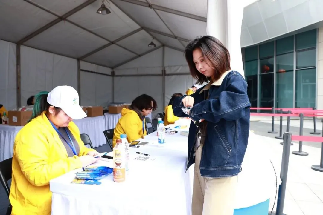 现场暖意涌动、秩序井然,身着统一服饰的志愿者们精神抖擞,用亲切的问候与明媚的笑容,迎接每一位远道而来的跑者。“您好,欢迎来桐乡!”“您好,请出示您的有效证件。”一句句清脆暖心的问候此起彼伏,瞬间拉近了与跑者的距离。指引标识清晰醒目,各窗口分工明确,选手们顺畅完成身份核验、芯片检测、物资领取等流程。