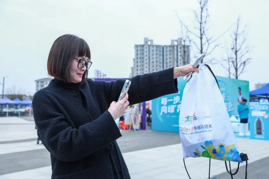 志愿者们双手递上沉甸甸的参赛包(含参赛服、号码布、专属补给等),轻声送上祝福,跑者们或当场试穿参赛服、或与号码布合影留念,眉眼间满是对赛事的期待与憧憬。