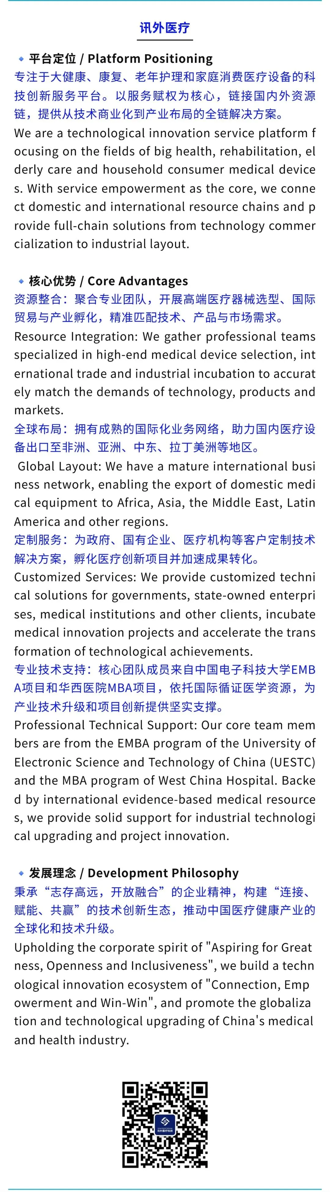 随着第三十三届成都医疗健康博览会的落幕,讯外医疗科技的西部市场布局再添重要一笔。未来,公司将继续扎根四川,面向西部,以创新技术+优质服务为核心,在急救设备、家庭医疗、康养服务等赛道持续发力,助力西部医疗健康产业高质量发展,为更多家庭带来专业、可及的健康保障。
