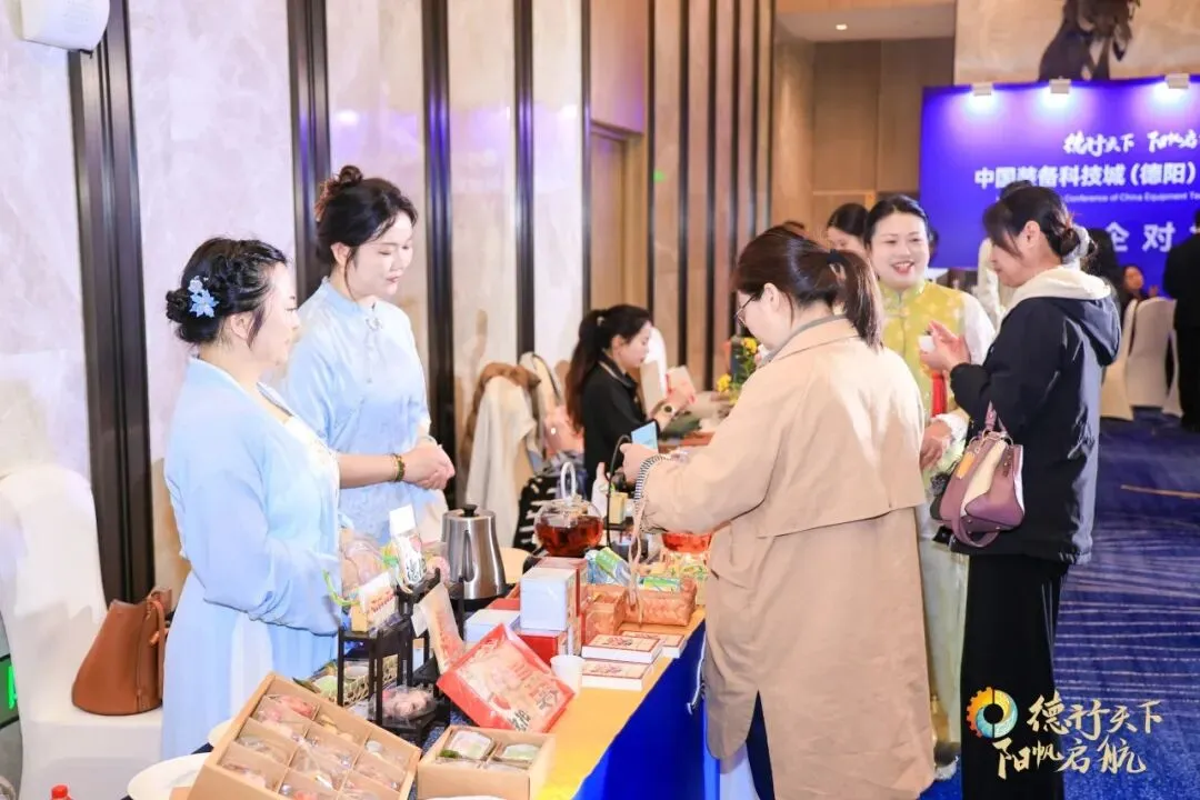 除了硬核的产业推介与合作洽谈,活动现场还打造了沉浸式体验场景,让与会嘉宾全方位感知德阳的城市魅力。会场外,“德阳好物”展区人头攒动,特色产品琳琅满目,什邡雪茄、德阳潮扇、中江挂面、八宝油糕等等好物,无不吸引着参会嘉宾的目光。工作人员热情地向驻足者介绍产品的独特优势与背后的产业故事,嘉宾们或亲手拓印绵竹年画,或品尝特色美食,或细致观摩德阳潮扇的精巧扇骨与细腻扇面,在互动体验中真切感受德阳深厚的文化底蕴与特色产业的蓬勃活力。