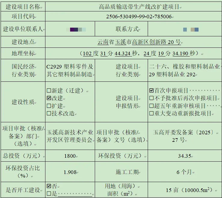 【产业兴玉】高新区高品质输送带生产线改扩建项目