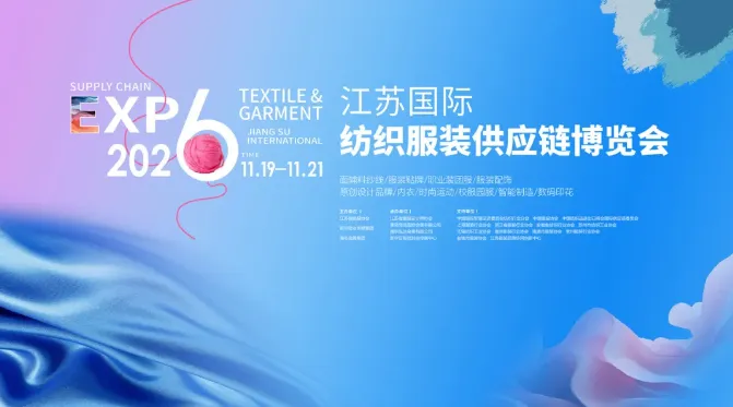 2026年11月19日—21日,南京国际博览中心2号馆,2026江苏国际纺织服装供应链博览会诚邀全球纺织服装人相聚金陵,在“十五五”的春风里,链动产业脉搏,共赴锦绣未来。