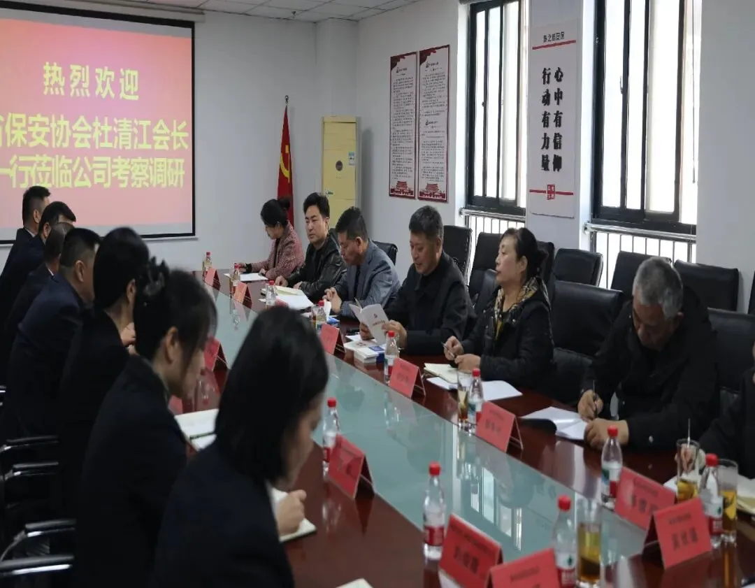 在调研座谈中,李林安和王余庆又先后介绍了公司党建工作和各项业务开展情况。杜会长对公司以党建引领、多元拓展、科技赋能的经营成效给予高度评价,勉励企业要以更高的政治站位,进一步加快科技赋能步伐,优化内部管理、提升专业能力,不断助力行业高质量发展。同时表示,省保安协会也将一如既往高度关注、全力支持企业发展,扎实做好“送温暖、送服务、送保障”各项工作。