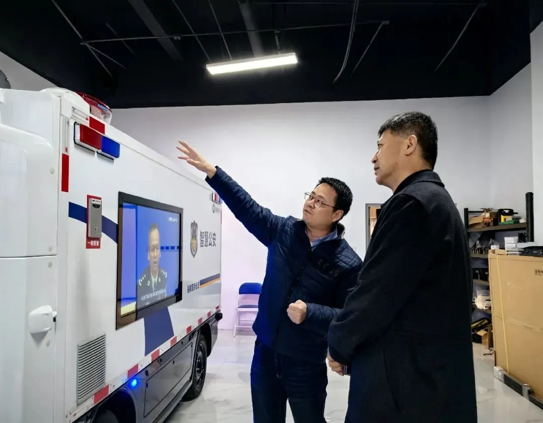 3月17日是一个寒意绵绵的雨天,在淅沥的春雨中,调研组来到高新区数智产业园区,在西安唯海智慧安防技术有限公司开展走访调研。在公司一楼展厅,调研组参观了公司自主研发的自动警务巡逻车,柳海波总经理操作演示并讲解了该产品集宣传、巡防、一键报警、无人机运载的全流程。在智慧运营调度中心,研发人员详细介绍和展示了智慧安防一体化平台的实时运行情况,调研组现场沉浸式体验相关智能系统在人员智能识别、全域实时监控、应急快速调度、隐患自动预警等场景实战功能,重点就大数据分析、人工智能算法等前沿技术在安防领域的深度应用、科研成果转化效率以及警保联动协同机制等核心内容,与企业研发及管理团队进行了深入交流。对公司立足西安、面向陕西辐射全国的以科技赋能引领安防提质增效的站位及取得的成效颇为赞许。