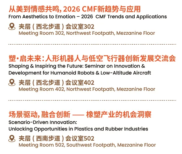 三场论坛,邀请明星专家、行业大咖,从设计美学、新兴产业、场景应用三大维度,为您全面剖析橡塑行业的未来图景。