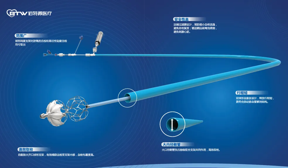 佰特微自主研发的外周静脉取栓系统是同品类国产唯一获批"创新医疗器械特别审查绿色通道"资质的创新产品。该产品由上海交通大学附属第九人民医院血管外科陆信武主任牵头完成国内多中心注册临床,并即将国内获批。同时,公司已于2025年国内获批的肺动脉取栓系统产品,为国内唯一自膨支架式取栓系统,可直接对标国外竞品二代产品设计方案,拥有完全的自主知识产权。公司同步布局动脉血栓减容等产品构建国内外周血管内血栓物理减容第一品牌。