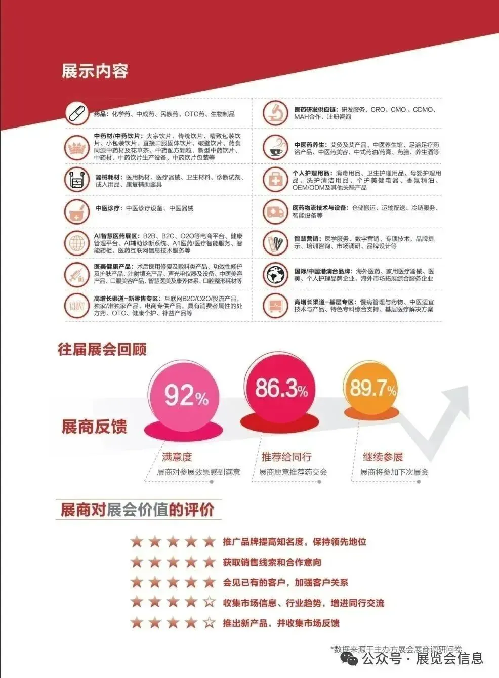 全国药品交易会(PHARMCHINA)是医药制剂与健康领域极具规模和影响力的专业盛会,每年举办春、秋两届,历经40余年的不断创新发展,已成为客户关系建设、新品发布、商贸合作、洞察趋势、信息交流、品牌建设、商务社交功能为一体的首选平台。展示内容涵盖化学药、中成药、中药材、中药饮片、药食同源、生物药、器械耗材、个人护理、医美、医药研发供应链、医药物流技术与设备、智慧营销解决方案、互联网+等细分产业集群,汇集了覆盖全国等级医院、零售药店、医药电商、基层医疗终端等全渠道的专业资源与合作伙伴。第92届全国药品交易会将于2026年5月13-15日在国家会展中心(上海)举办。同期举办:中国国际健康营养博览会(NHNE) 、API医药原料展秋季全国药品交易会(北京)