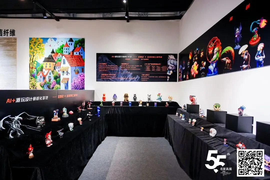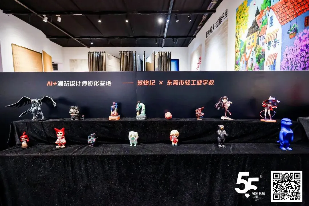 第55届国际名家具(东莞)展览会期间,东莞市轻工业学校携设计专业学生全流程自主打造的原创潮玩产品精彩亮相,成为展会中极具青春活力的一道风景线。学生们将课堂创意转化为市场作品,让产教融合与“AI+制造”的育人成果在行业舞台展现,为东莞“潮玩之都”建设注入了新鲜的青春创意动能。