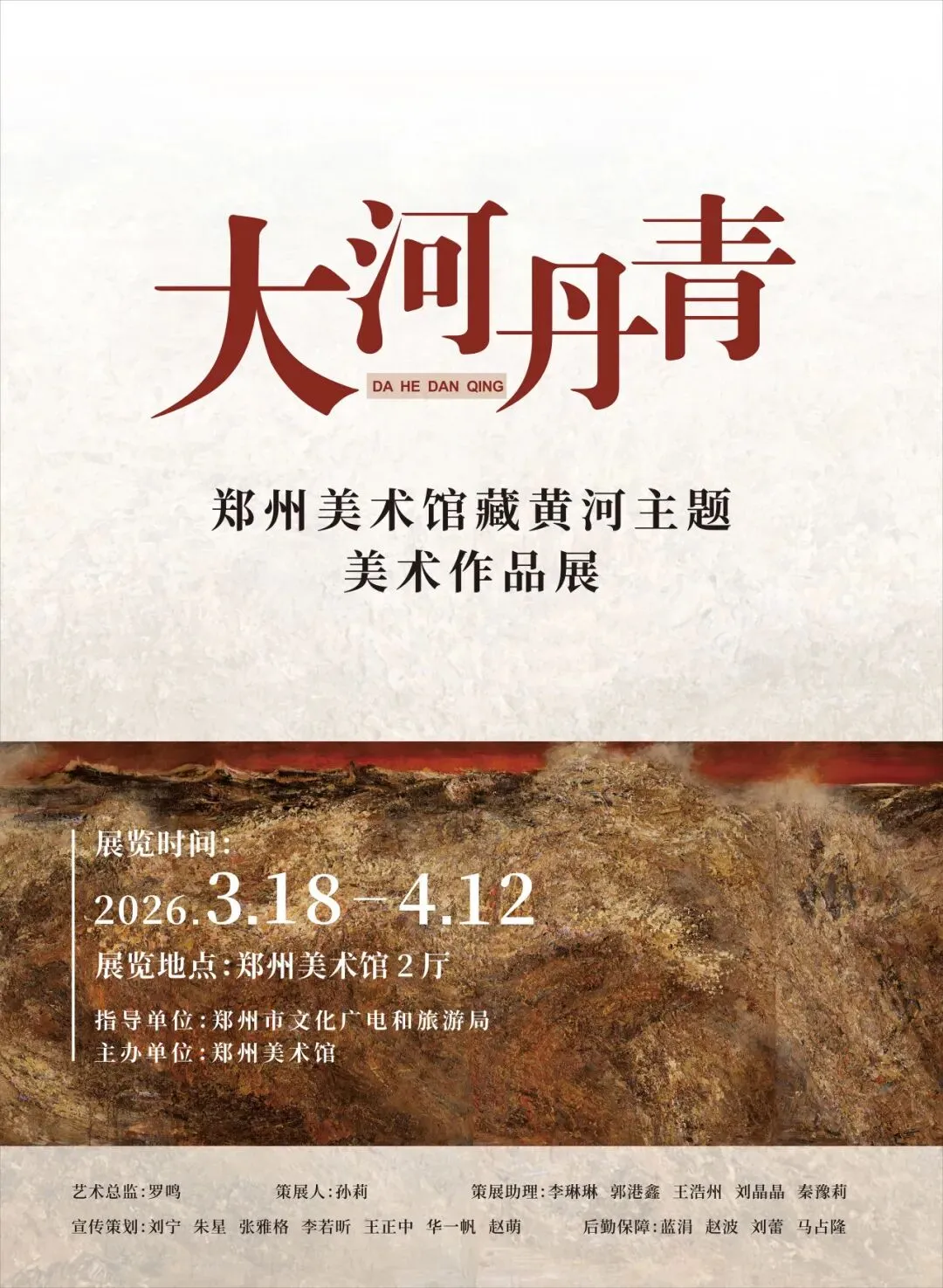 大河汤汤,不舍昼夜;文脉悠悠,绵延不绝;丹青灼灼,映照古今。此次展览,是郑州美术馆(郑州画院)对自身馆藏学术体系的一次深度梳理与活化阐释,更是积极响应国家黄河流域生态保护和高质量发展战略的文化践行。我们以展为媒,让馆藏艺术精品更好服务公众、回馈社会,希冀更多人读懂黄河、热爱黄河、守护黄河,更愿以艺术之力凝聚文化认同,以丹青之韵传承民族精神,见证黄河文化在新时代的创造性转化、创新性发展,让黄河文明的根脉在赓续中生生不息。