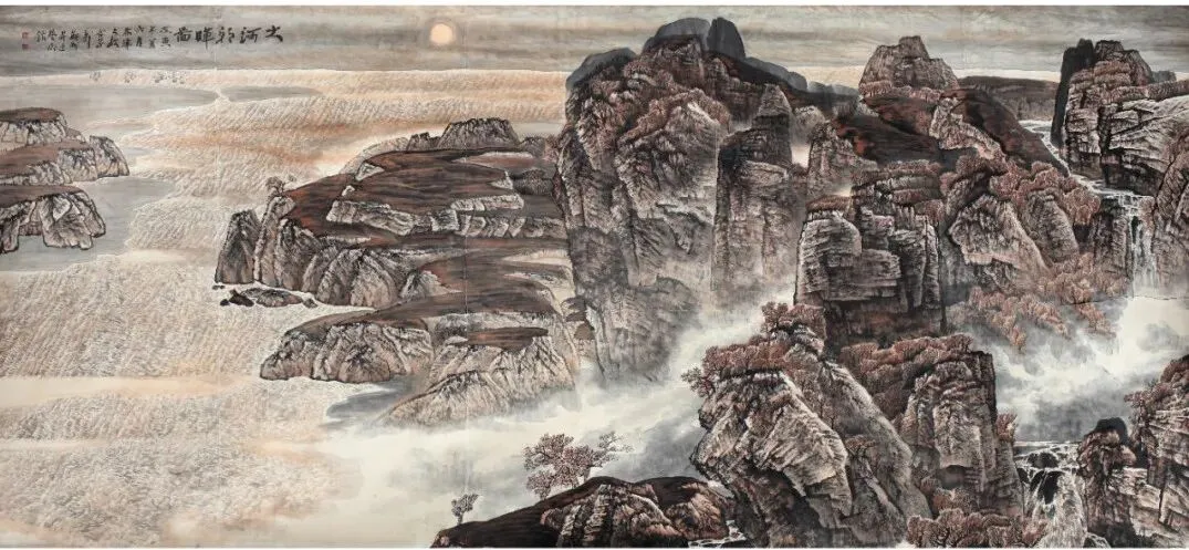 林玮·谢冰毅 《大河朝辉图》 中国画