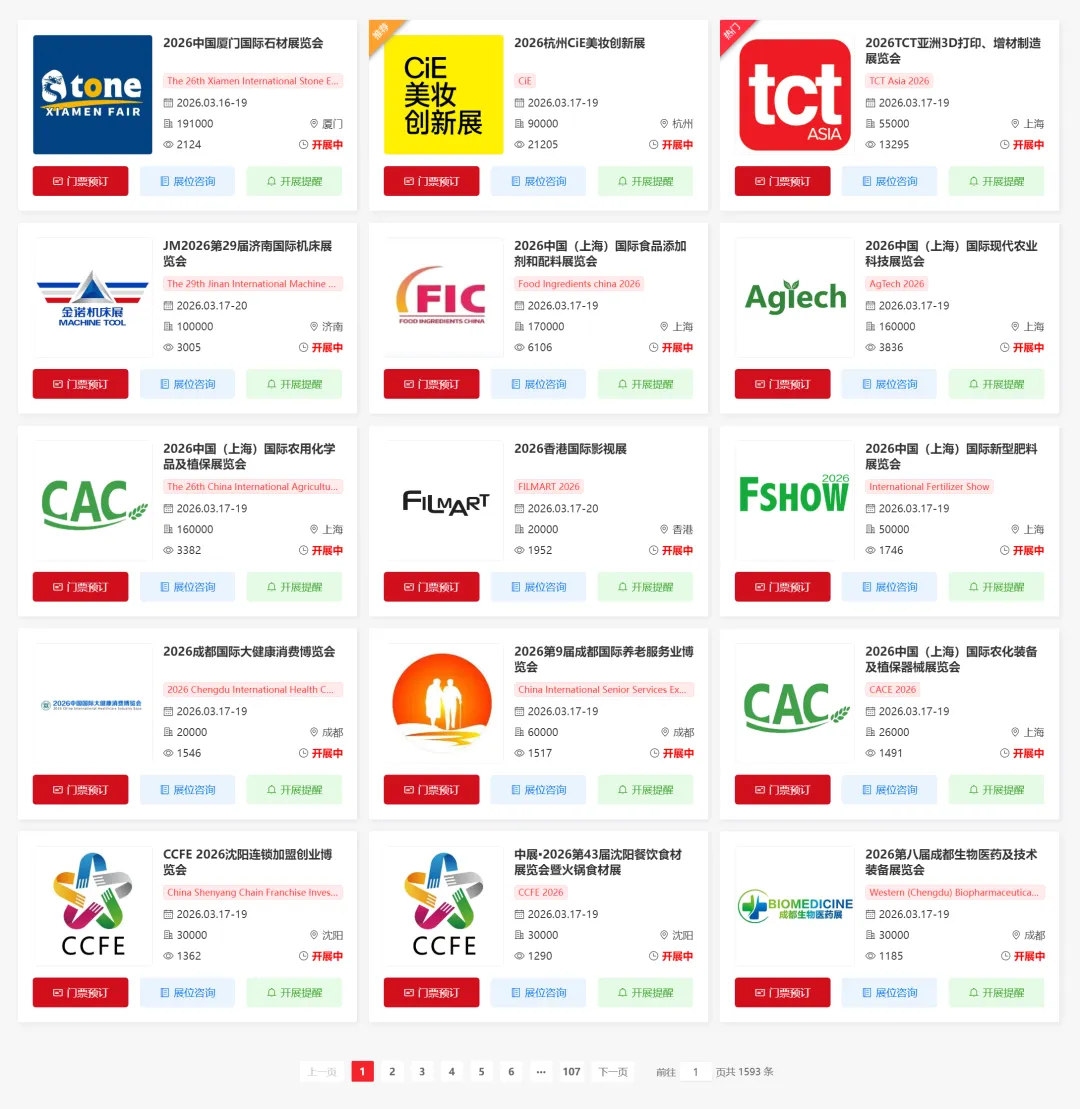 以上展会信息均来源于展馆、官方网站等公开渠道整理,仅用于传递行业资讯,为业内人士参展、观展提供参考便利。因展会时间、地点等信息可能随实际情况调整,存在一定不确定性,最终请以展会实际举办情况为准。