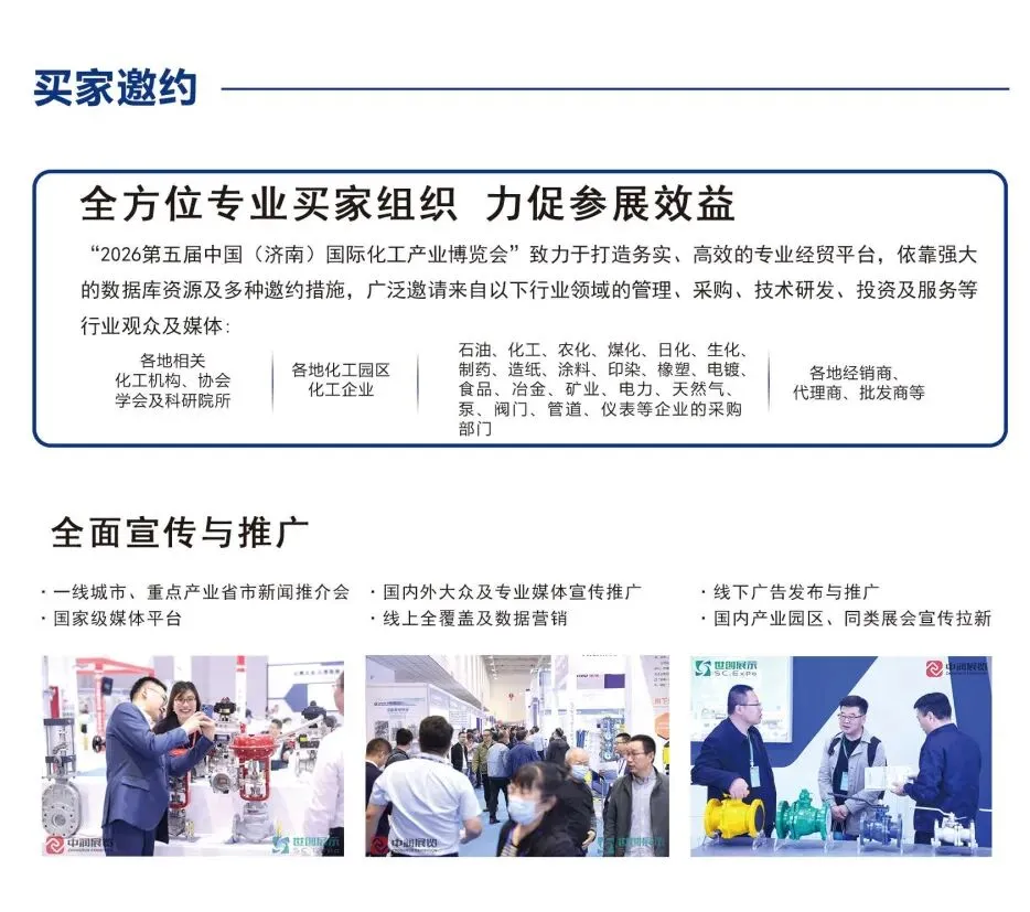 2026第五届中国(济南)国际化工产业博览会定于2026年3月30-4月1日在山东国际会展中心盛大召开,博览会主要围绕:化工新型材料、绿色化工设备、化工互联网解决方案、实验室建设等方面进行技术与产品的展示。博览会将汇聚各地化工园区、科研院所、高校、生产型企业、化工贸易商、经销商等行业上下游客户同台交流沟通,真正做到“化工行业一站式贸易采购平台”,诚邀您的参与!
