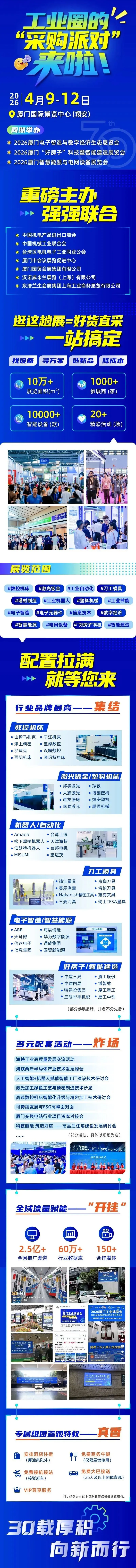 本次展会将携手1000余家海内外品牌企业,于4月9-12日在厦门国际博览中心(翔安),全方位展示工业制造产业链的前沿技术和创新成果。