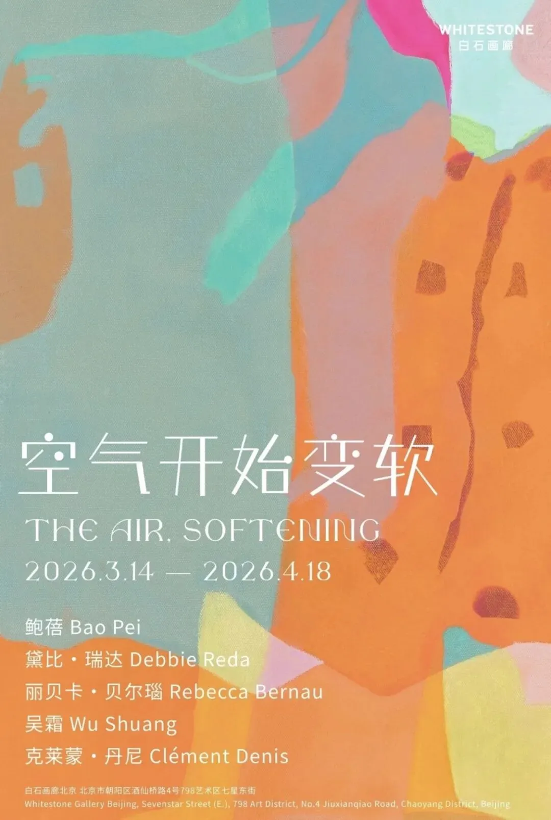 白石画廊北京于春日之际即将呈现中外艺术家群展《空气开始变软》,并汇聚五位来自不同文化语境的艺术家作品。五位艺术家的作品在同一空间中彼此呼应,如同不同方向吹来的气流,在此交汇。它们不急于指向清晰的形象,而是共同营造出一种松动而开放的状态。空气在作品之间悄然变软,时间也随之放慢了脚步。