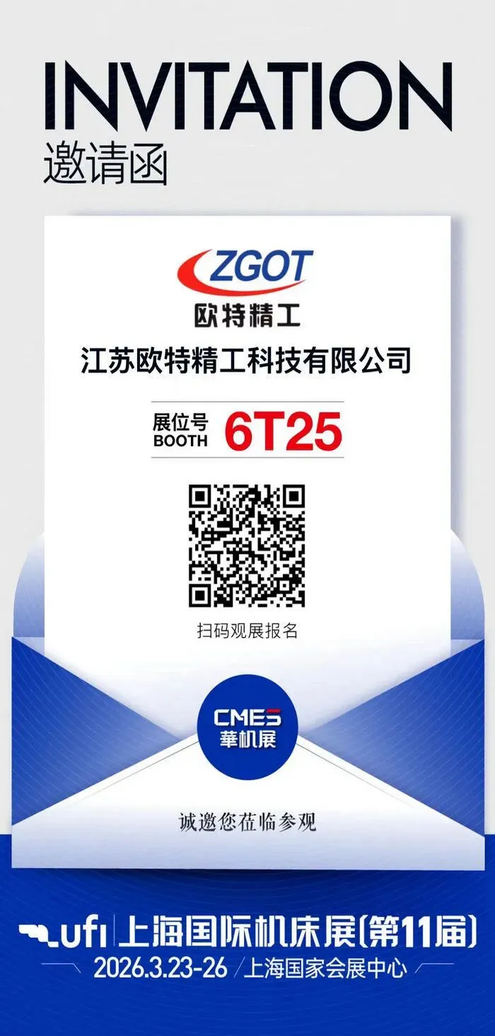 2026年3月23日至26日,CMES华机展 | 上海国际工业自动化及机器人展将在国家会展中心(上海虹桥)隆重举行(同期举办:上海国际机床展)。江苏欧特精工科技有限公司将盛装亮相,展位位于6T25,诚邀业界同仁及新老客户莅临参观交流。