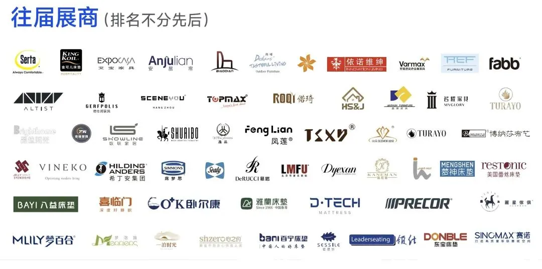 本届展会聚焦酒店及商业空间家具、睡眠精品、智慧康养、软装饰品四大领域,全面呈现行业新理念、新设计、新材料、新工艺。汇聚云集舒达、金可儿、席梦思、丝涟、希丁安、喜临门、梦百合、慕思、运时通、亚帝、帝加、VINEKO 唯尼可、依诺维绅、嘉顺、雅兰、黎明、PRECOR 必确、赛诺、百宁、名耀、雅格美天、PEBL、百好等星级高端酒店供应商和行业核心品牌。