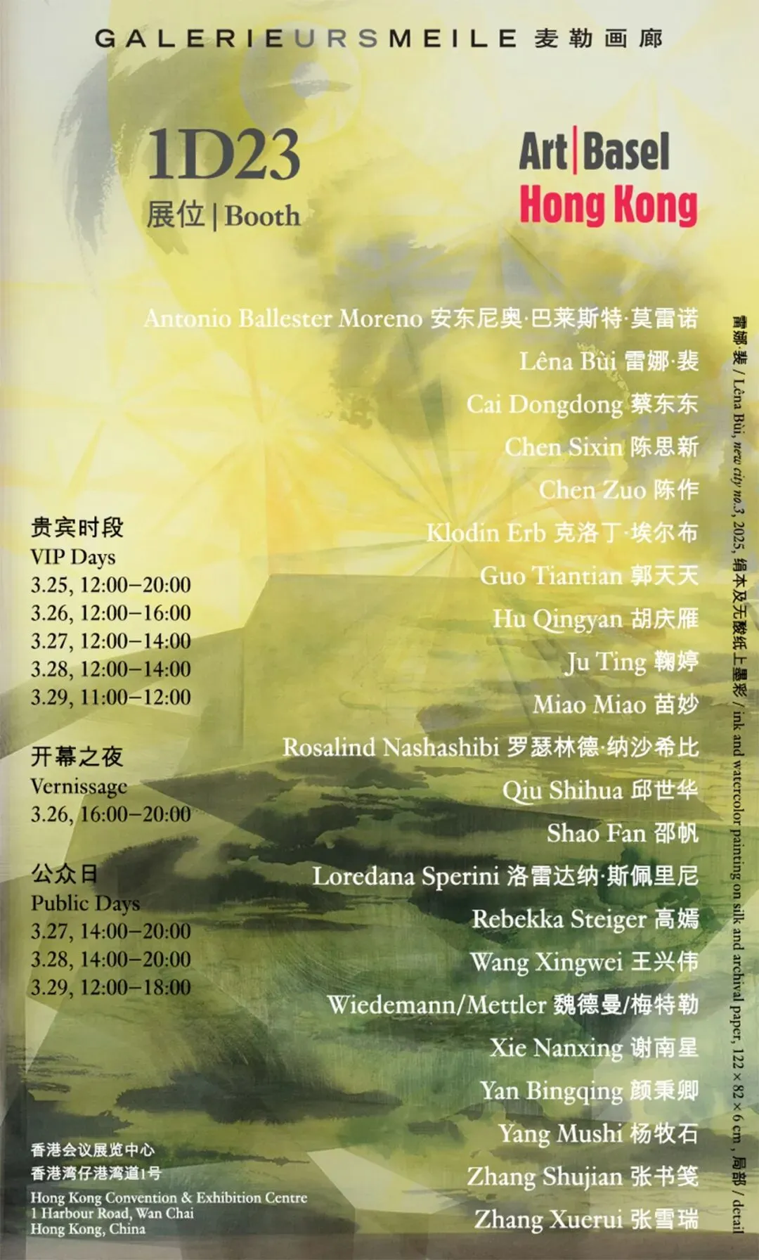 我们期待您莅临1D23展位以及我们位于北京和瑞士的空间。We look forward to your visit at our booth 1D23 during Art Basel Hong Kong 2026 or to the shows of our galleries.