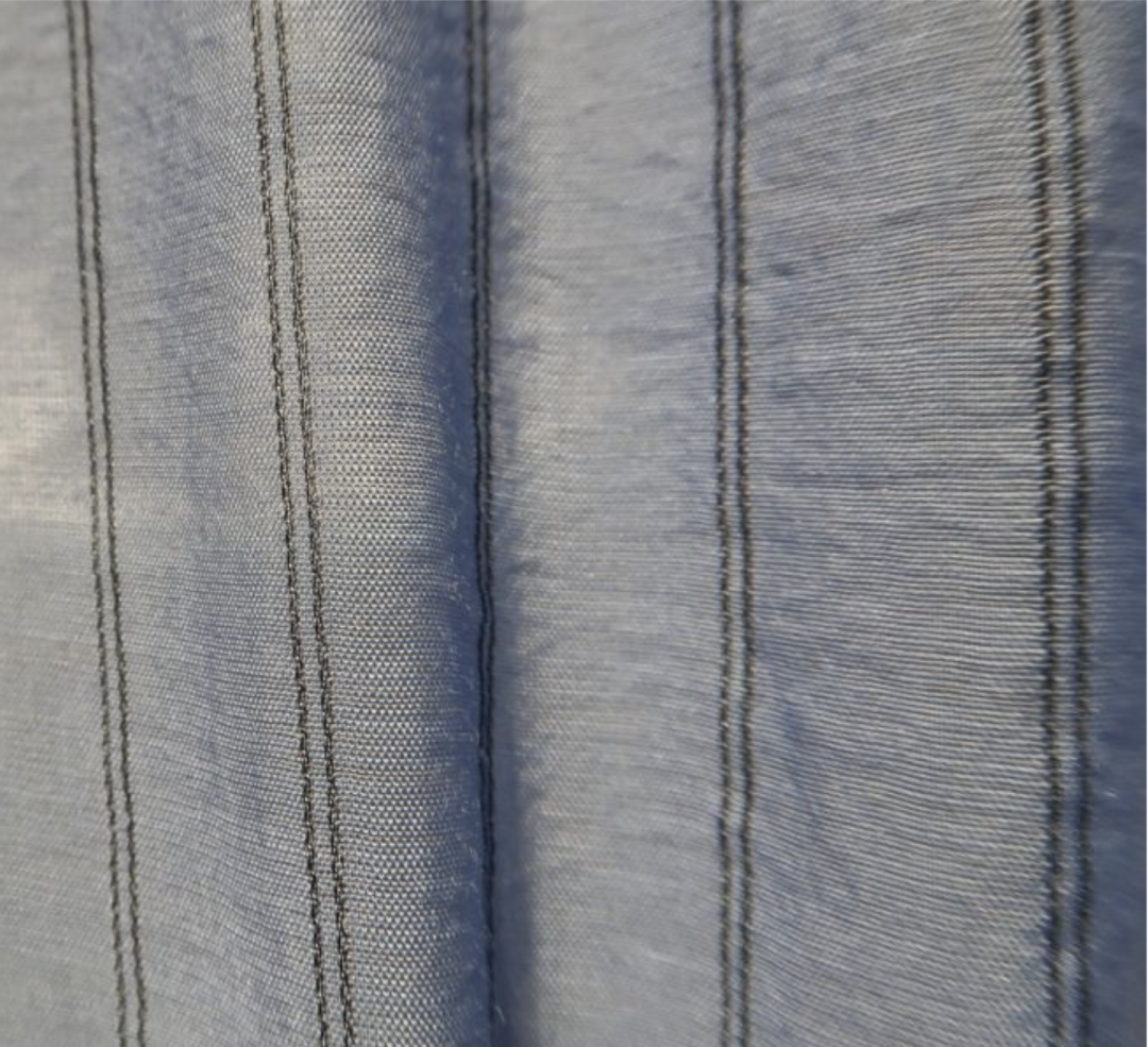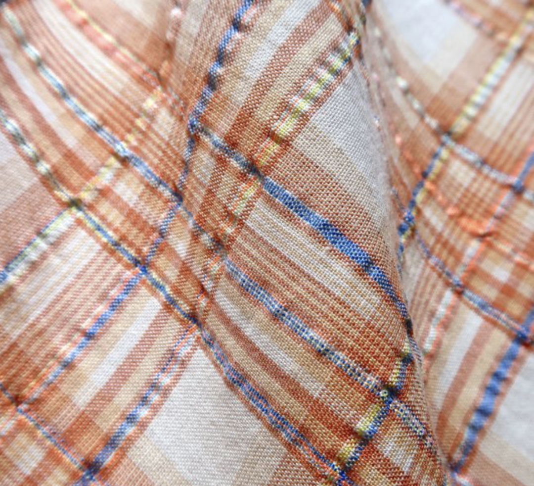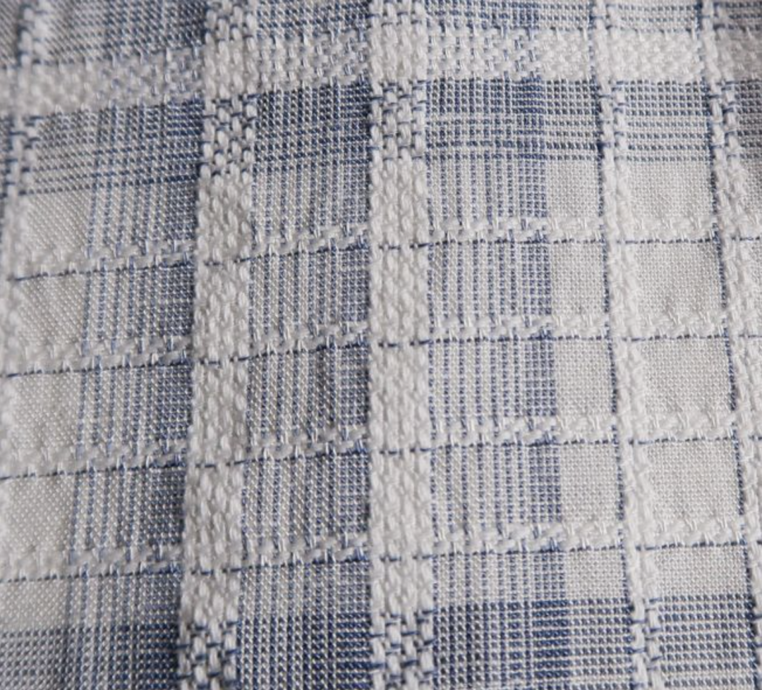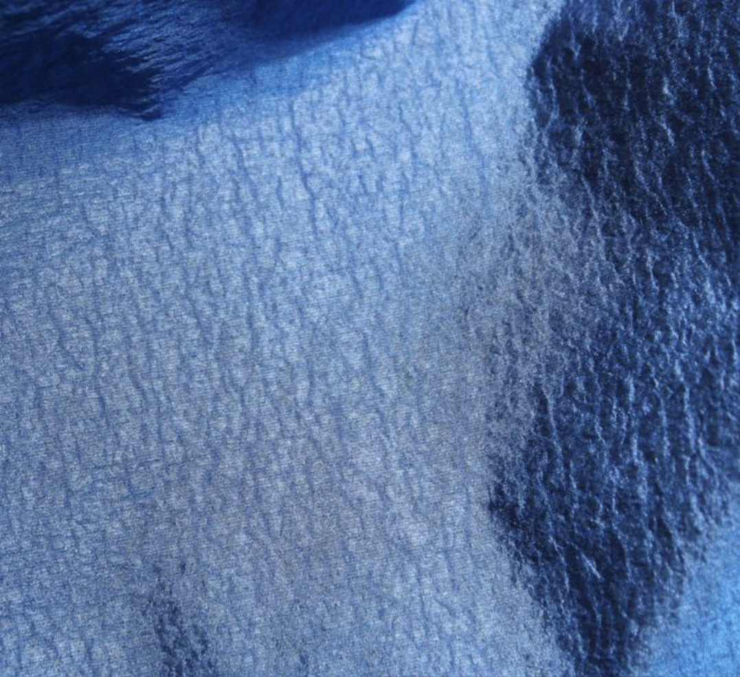 运用纱线和结构打造不规则的起皱及回缩纹理,并通过特殊整理增强色彩、光泽和纹理效果,使织物达到具有自然感的纹理。