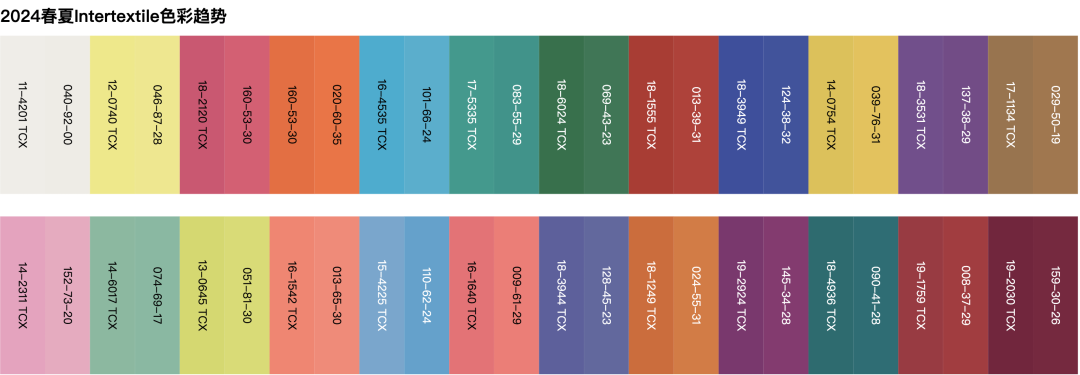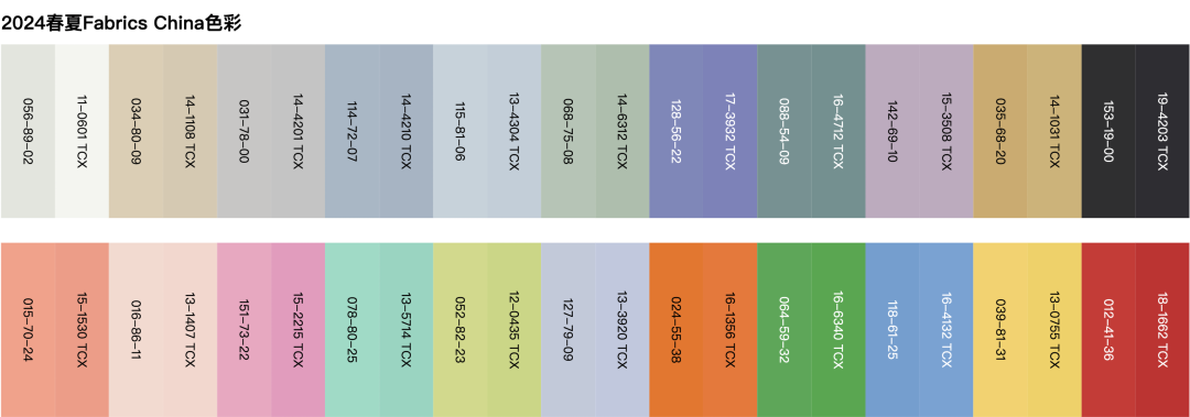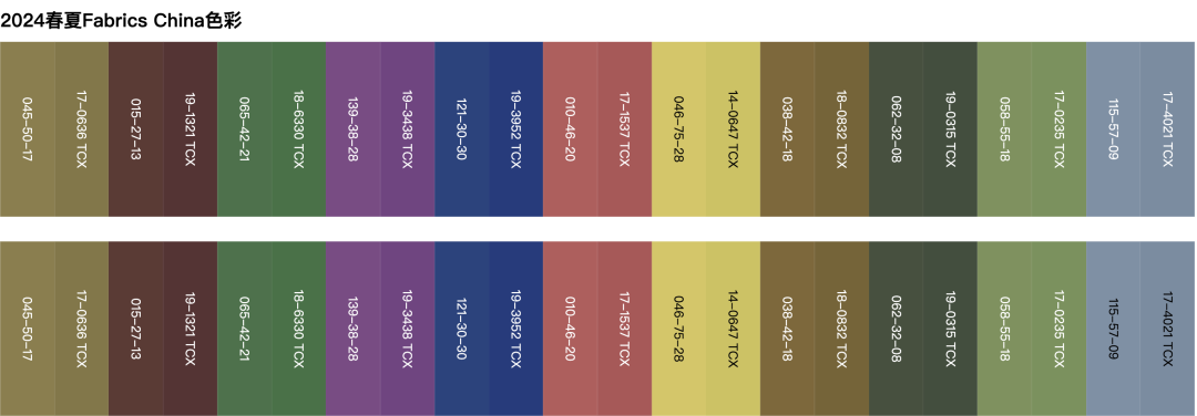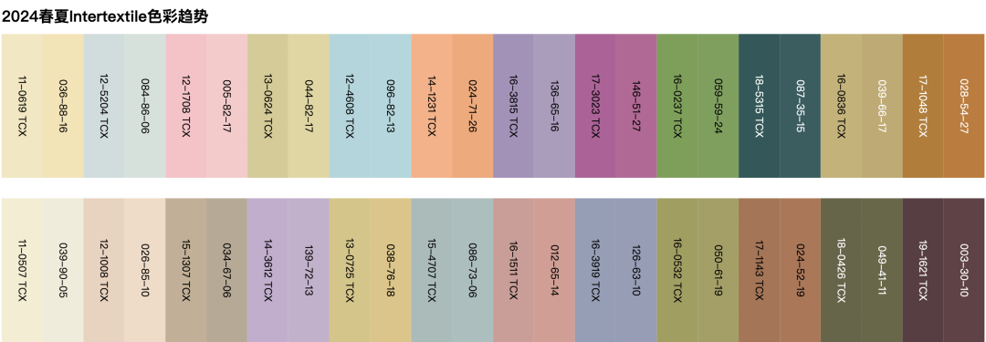 备受期待的上海Intertextile面辅料展在本季强势回归,以“继续前行”为主题阐释了2024春夏趋势,包括回归大地、诗意感性、小众另类和活力重启。在Fabrics China趋势论坛中,中国纺织信息中心发布的面料趋势以通达为核心概念,分为盎然、智性、共寻、隽永四个主题,旨在反映未来瞬变世界的流动性。