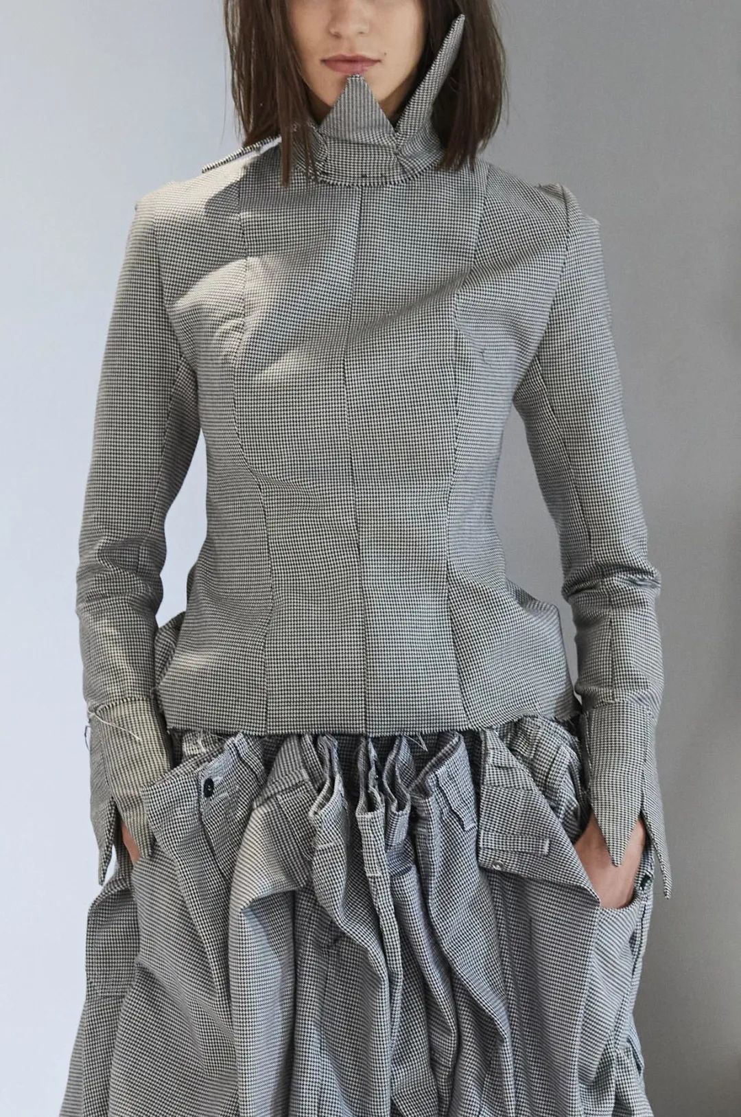 纸质触感的面料适用于轻便易携的单品,机能特性和起皱质感带来自然的时尚氛围。
