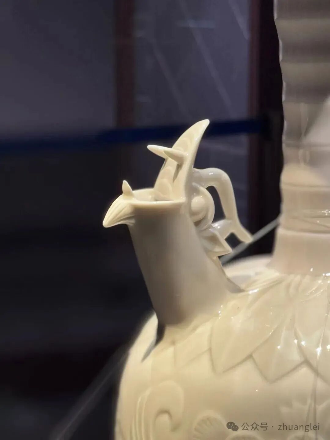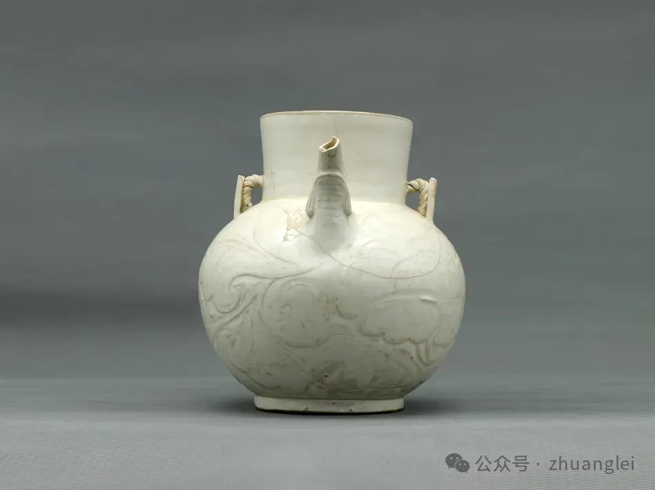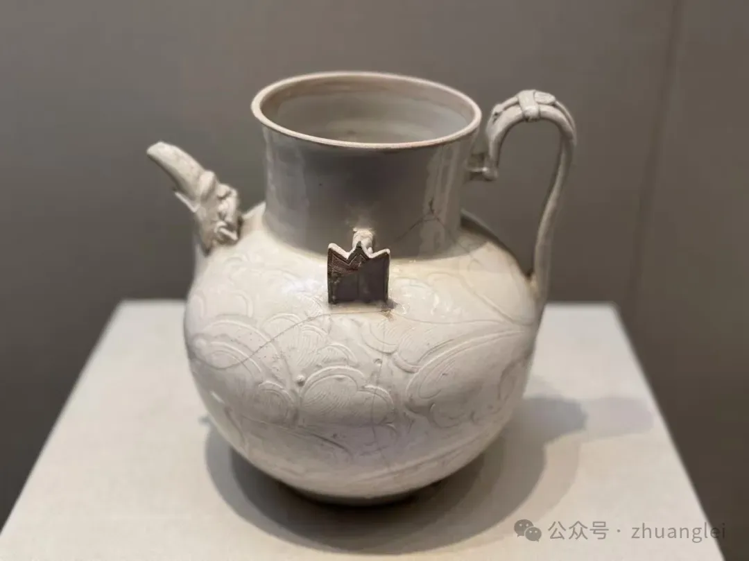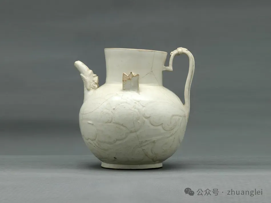 北宋 定窑白釉刻牡丹纹龙首注壶 定州博物馆藏