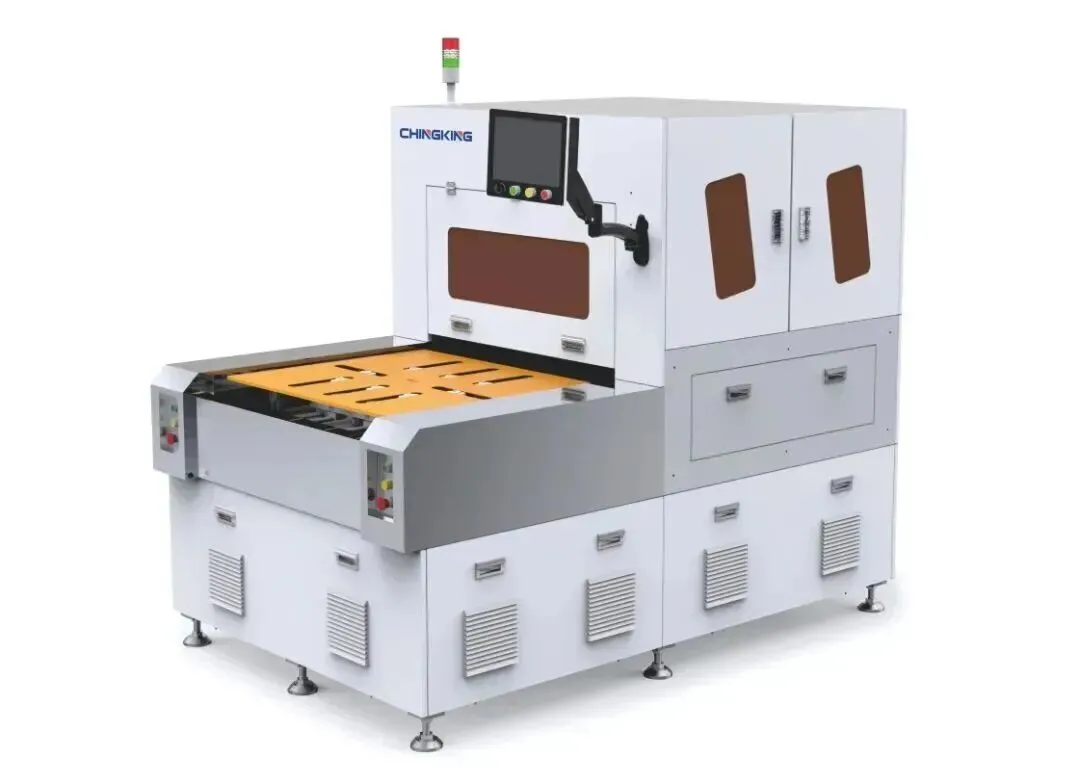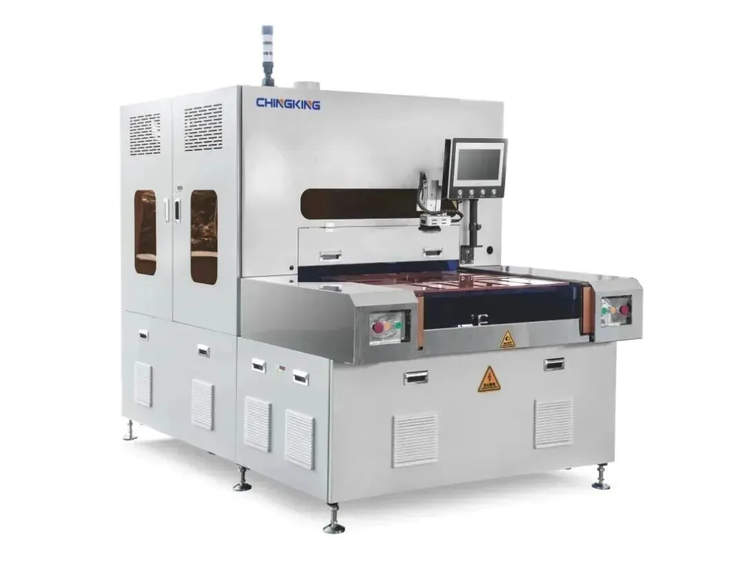CCD高频电磁熔合机,其定位是在传统PIN对位熔合机基础上的技术、工艺、流程升级,针对对位要求较高的PCB高多层、高密度及柔性,IC载板产品等开发的创新设备。该设备熔合对位无需冲孔,PP无需钻孔,缩短工艺流程,提高效率,减少累积偏差,新一代产品生产效率较传统有指数级的提升,使熔合批量生产成为可能。