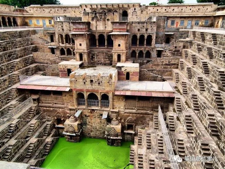 月亮井,位于印度拉贾斯坦邦的Abhaneri村,已有1000多年历史,深100英尺,有13层和3500个对称的台阶,是印度最大规模的阶梯井。