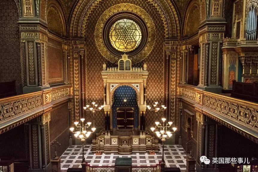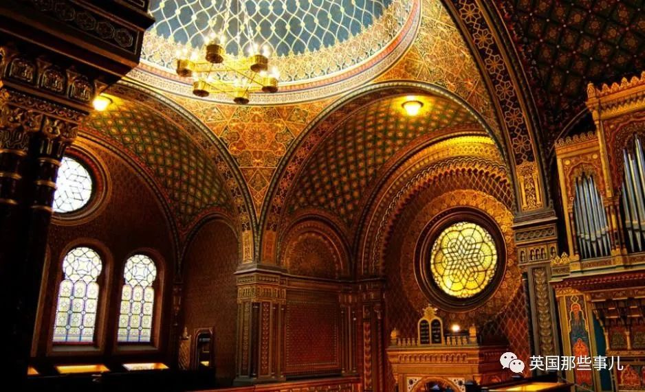 布拉格西班牙会堂,一直建于1868年的犹太会堂,内部别致的纹样非常华丽。