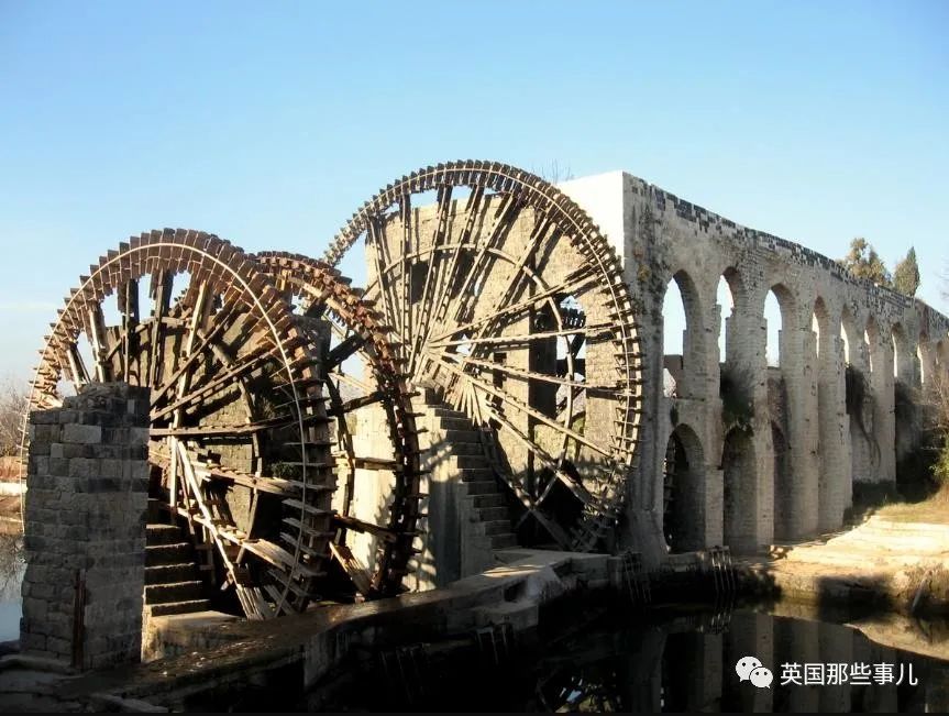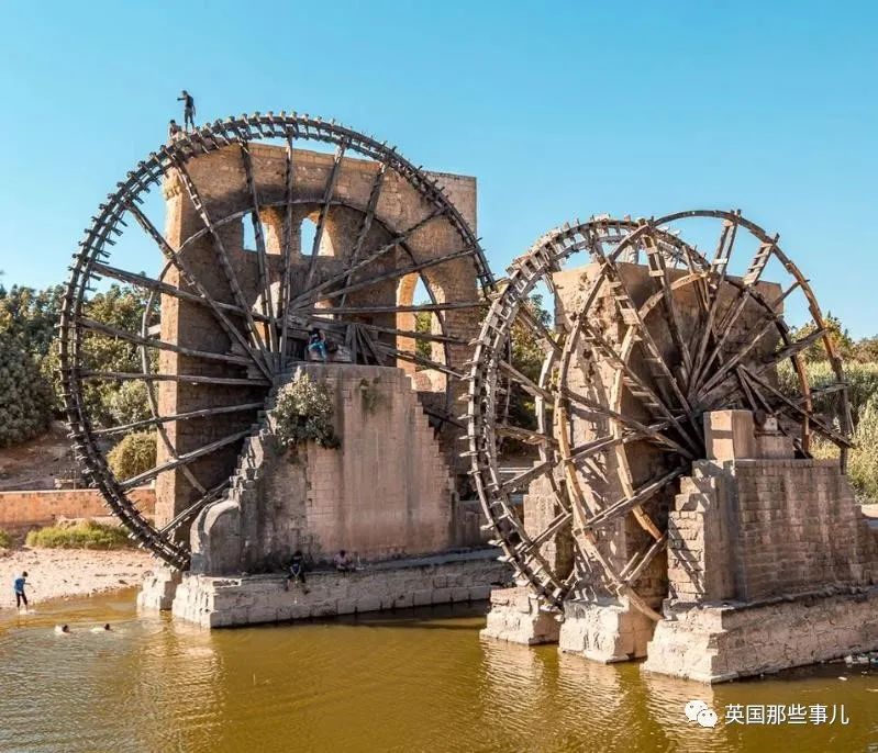 哈马水车,位于叙利亚哈马市奥龙特斯河上的一系列巨大的水车,据说修建于14或15世纪,人们将它用于灌溉以及为人们提供日常用水。