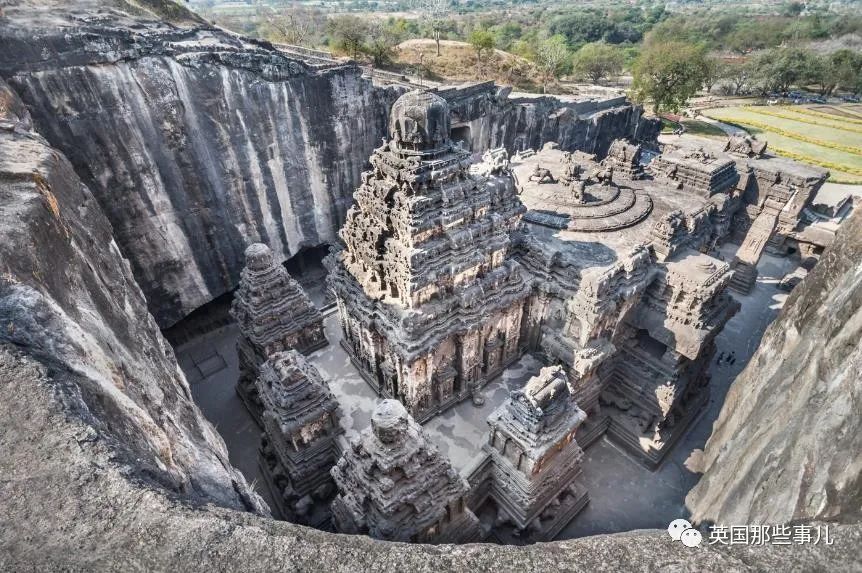 印度凯拉萨神庙,著名印度教石窟,开凿于公元8世纪,是世界上最大的,由人工在一整块花岗岩上凿出的印度教寺庙。