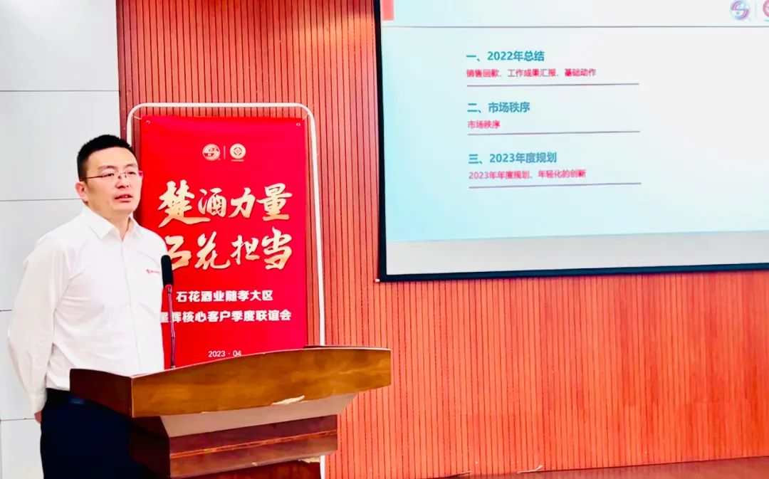 4月27日,石花酒业营销管理总部随孝大区随州星辉核心客户第一季度联谊会在石花酒产业园成功召开,石花酒业营销管理总部随孝大区总监方银银、随孝大区副总监黄君豪、随州办事处阿米巴副经理甘家玮、随州办事处大众酒副经理袁传坤以及随孝大区的合作伙伴共同参会。