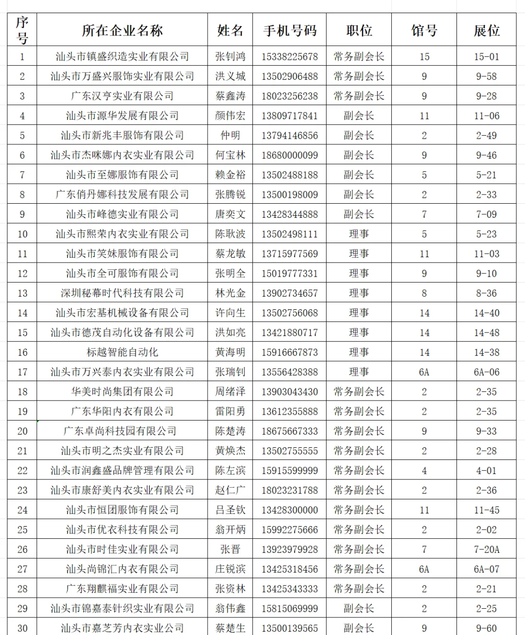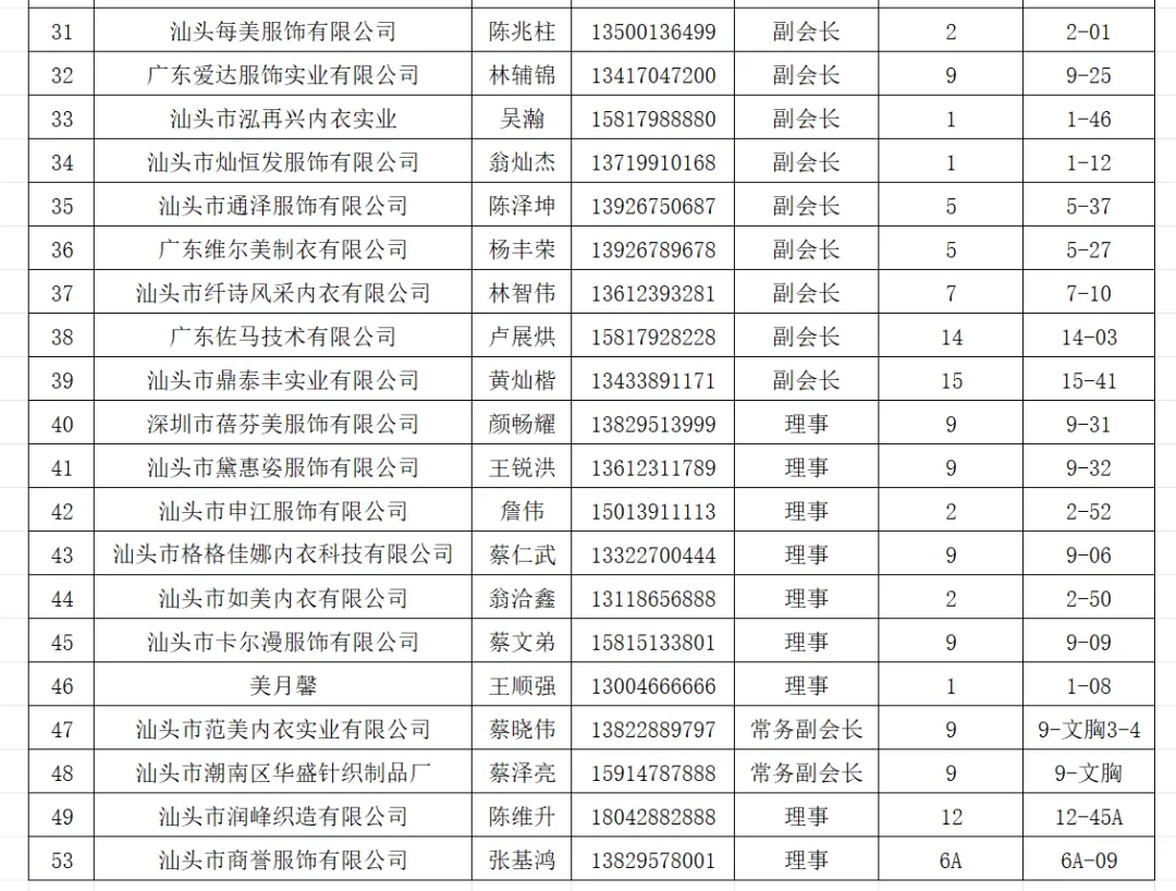 文胸分会完整参展会员企业名单