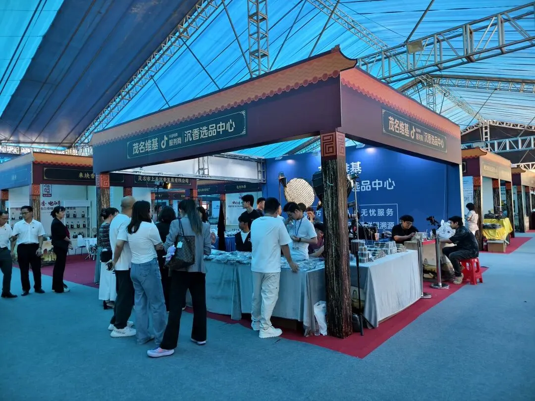 博览会现场人头攒动、香韵四溢,来自全国各地的上百家沉香企业、品牌商及产业链上下游商家齐聚电白,共同见证这场香业盛事。