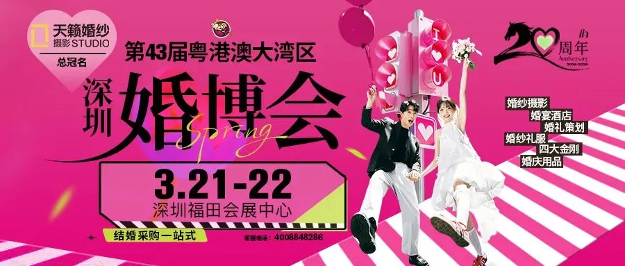 别慌!这个周末,深圳会展中心(福田)双展同开:第43届粤港澳大湾区(深圳)婚博会(9号馆,3月21-22日)与第37届深圳名品家博会(6、7号馆,3月20-22日)接连登场。从求婚成功到入住新家,所有幸福大事,这个周末一站搞定!