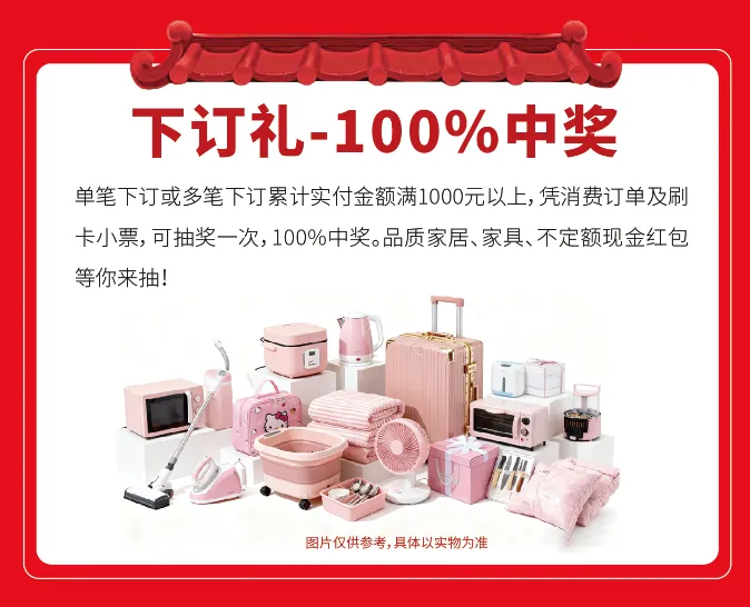 单笔订单实付金额满1000元即可抽奖,100%中奖!绝不落空,人人有份!
