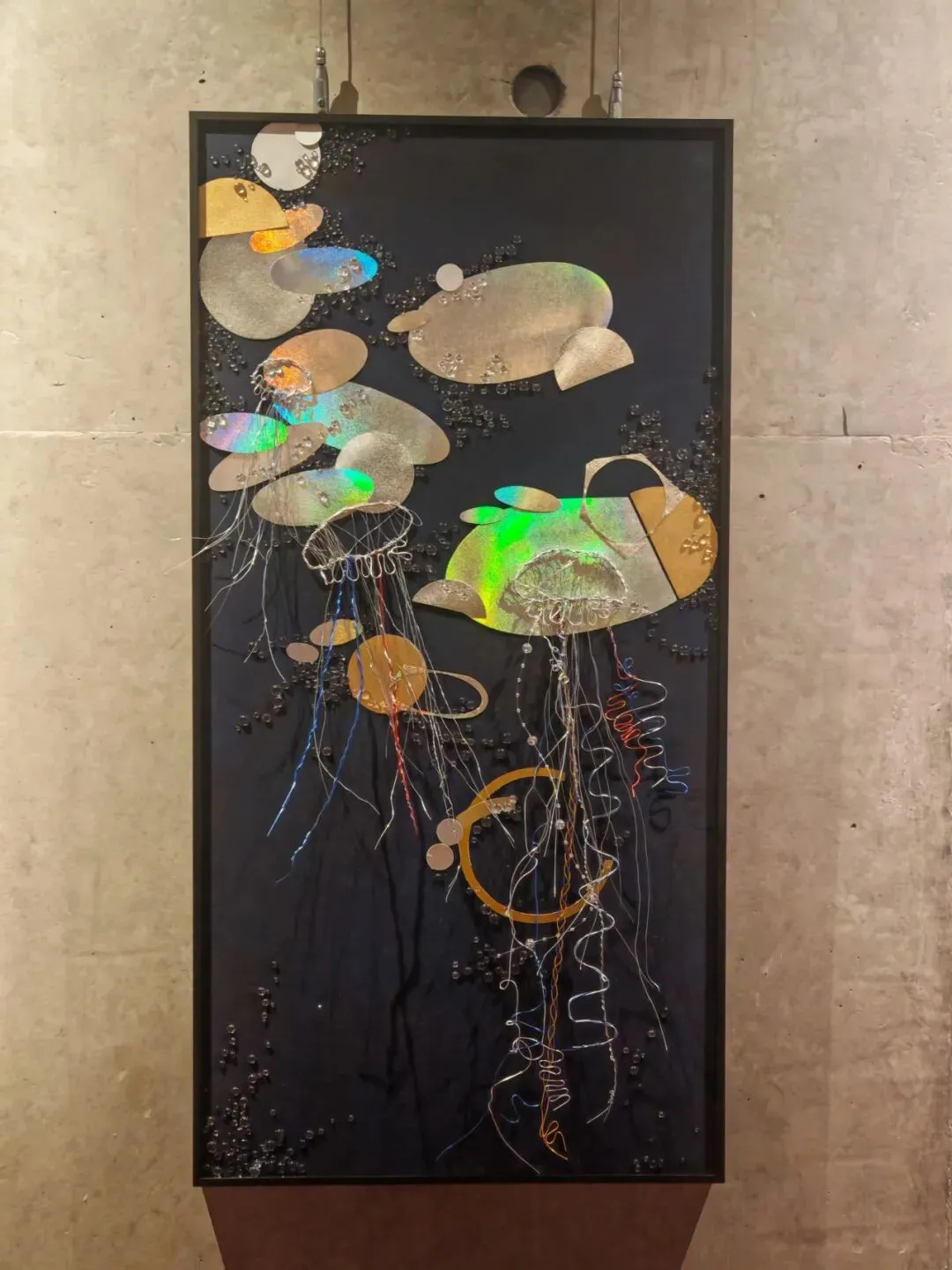本作品选用铁丝、金属色卡纸等综合材料创作,灵感源于水母的形态与意象。