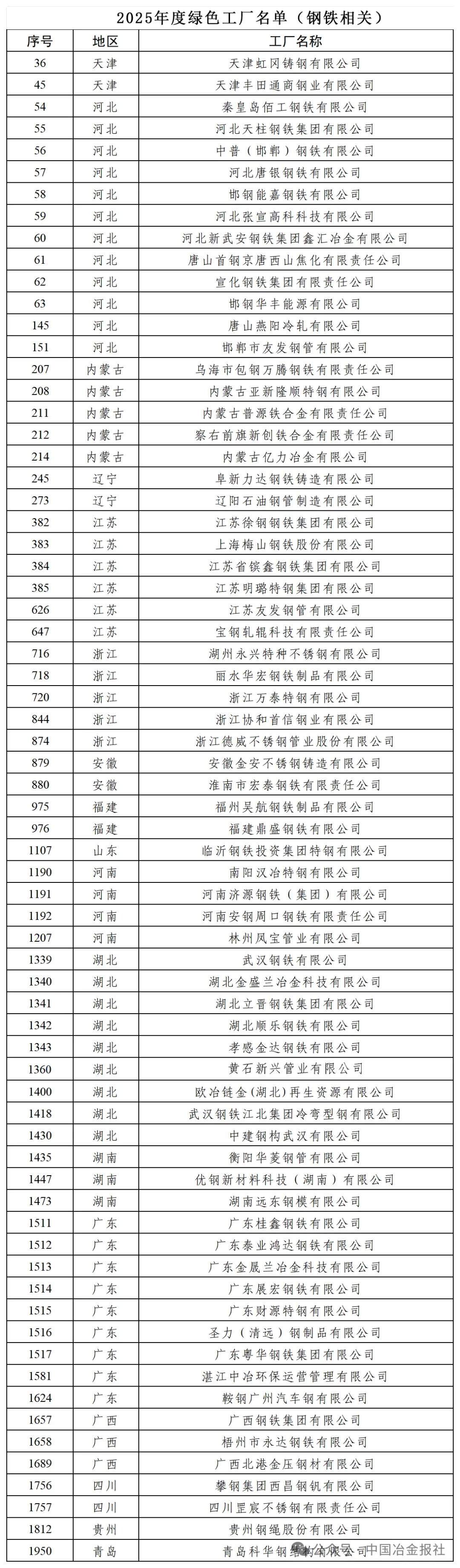 2025年度绿色工厂名单出炉:钢铁行业多家企业入选!