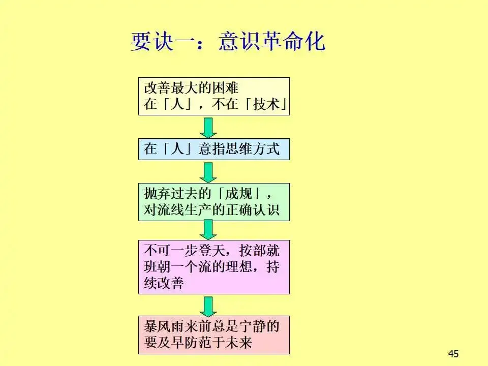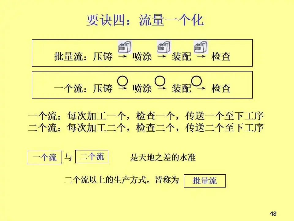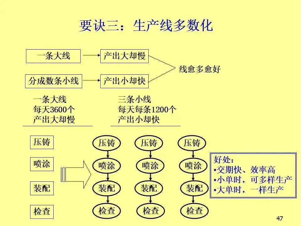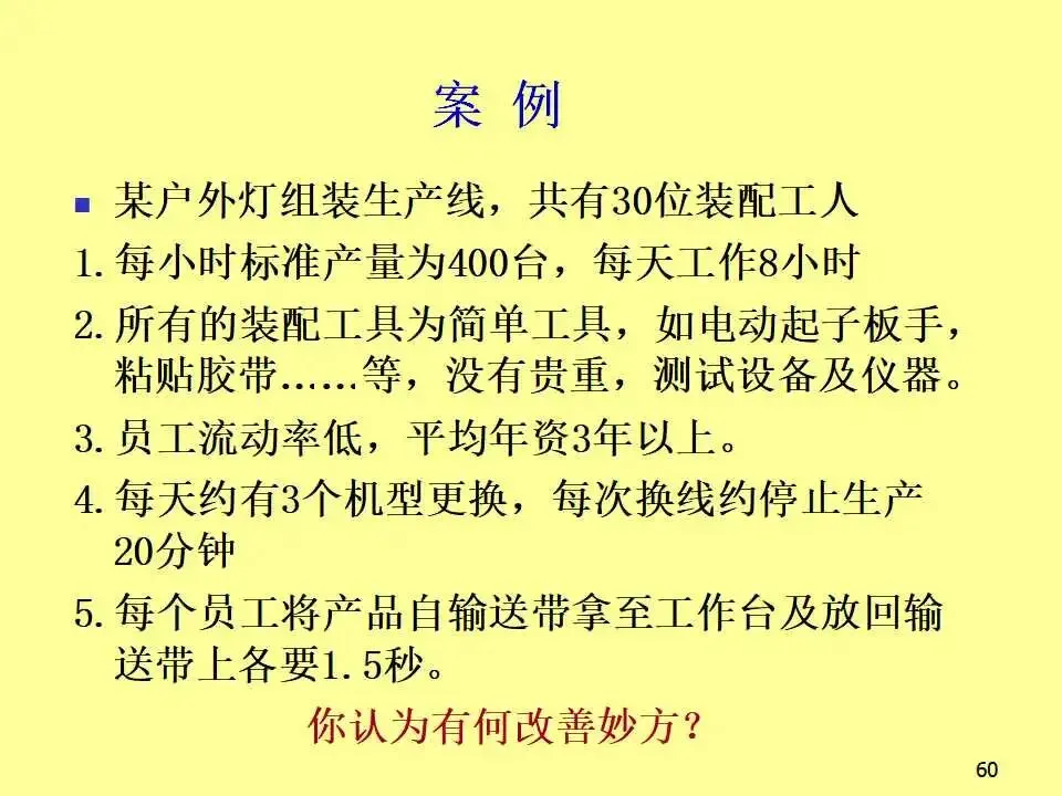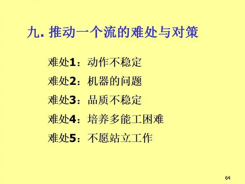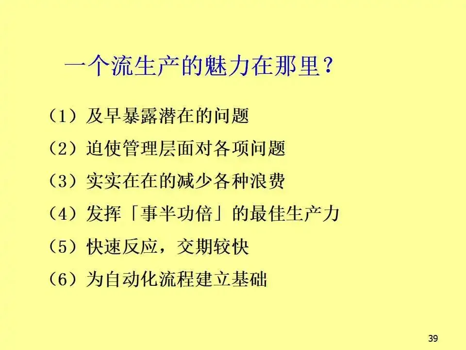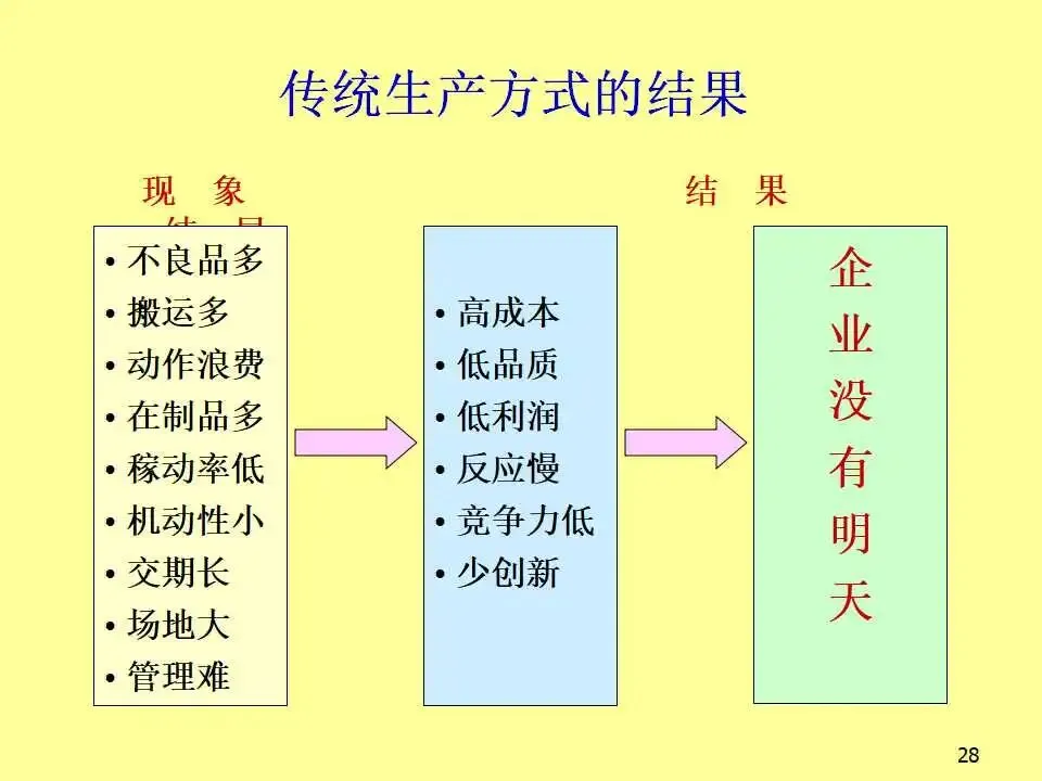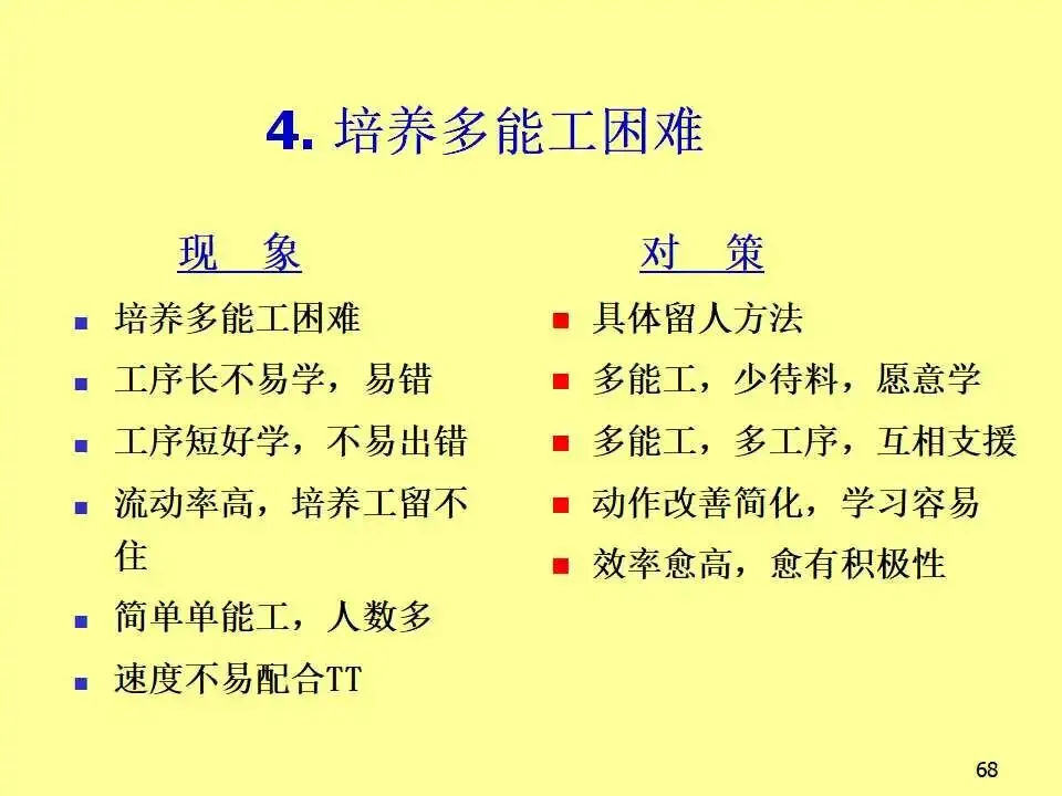 本文系统阐述了生产线平衡的核心概念、实施方法及其对企业竞争力的深远影响。教材首先从成本控制入手,强调在汇率波动、原材料价格上涨等外部压力下,企业必须通过精益生产实现降本增效。随后,教材详细介绍了生产线平衡的分析工具,如标准工时测定、不平衡率计算、工程分析等,并通过实例说明如何通过工序合并与重组,显著降低不平衡率并减少人员配置。教材进一步对比了传统批量生产与“一个流”流线生产方式的根本差异,指出传统模式存在在制品多、交期长、品质难控、管理复杂等问题,而流线生产则以“产品别垂直布置、多能工操作、后拉式生产、设备小型化”为特征,能够实现快速响应、低库存、高品质和高效能。在实践层面,教材提出了流线生产的六大要诀,包括意识革命、产品别垂直化、生产线多数化、流量一个化、弹性化布置和同步化工序,并系统介绍了从设定产距时间到维持管理的五步设计流程。此外,还批判性地反思了输送带的传统使用方式,提出分组作业等创新思路,显著提升产能。最后,针对推行流线生产中常见的动作不稳定、机器故障、品质波动、多能工培养困难等问题,提出了具体对策,强调“人”的思维转变是改善的关键。