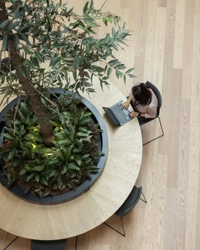 彻底打破传统格子间的封闭隔阂,采用可自由重组的模块化低碳工位体系,搭配垂直绿植墙与原生景观造景,把森林的鲜氧与生机注入开放办公区。让每一场双向沟通、每一次灵感碰撞,都发生在这座会自由呼吸的都市森系花园里,让协作更具活力与温度。