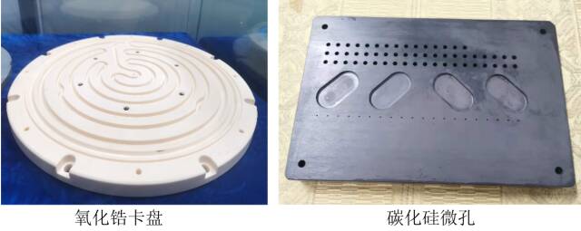 公司自主研发超声振动加工机床,集成自研超声系统、高精度主轴等核心部件,适应性强、可靠性高,可实现硬脆难加工材料复杂构件的高效精密加工。面向半导体、航空航天、精密模具等尖端科技领域,专注于碳化硅、氮化铝、氧化锆、碳化硼、石英玻璃、蓝宝石、铁氧体、钨钢等硬脆材料的制孔、开槽、薄壁、球形、螺纹等复杂构件加工需求。提质增效优势显著:综合提高加工效率50~300%,刀具磨损降低30~80%,成本可降低50%以上,可轻松实现0.1mm陶瓷微孔钻磨加工,0.1mm陶瓷薄壁件磨削加工,Ra10-20 nm碳化硅陶瓷的超光滑表面加工。工艺数据库积累了陶瓷、玻璃、陶瓷复合材料等80余类,300多种硬脆难加工材料测试加工数据,结合先进超声振动系统,可快速对各种新型材料进行对照匹配,12小时内可实现95%以上产品完美打样加工,刀具寿命和加工质量大幅提升。