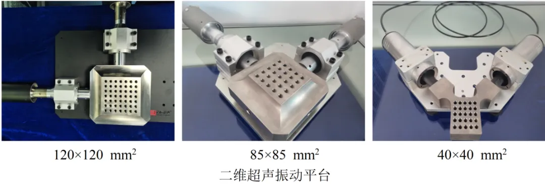 在一维超声振动技术基础上,通过在定制平台上施加两个方向的超声振动和精确控制超声电源相位,在平台区域生成合成运动模式,形成二维超声振动平台技术,从而满足精密磨削加工、3D打印、生物提纯、均质混料、超声消泡等不同场景的应用需求。