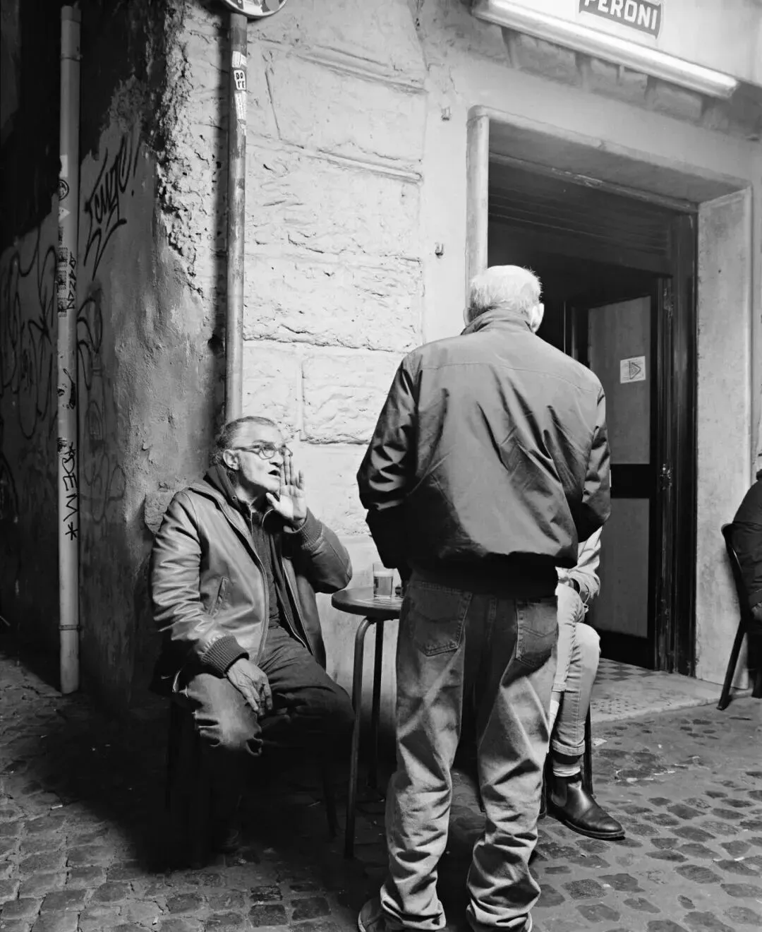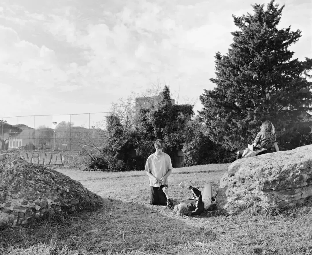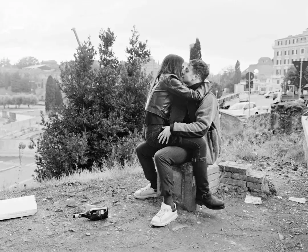 有些场景是没有预先计划的,是在公共空间根据对真实事件的观察即兴创作的,然后我们会在现场与人们合作进行重演/重现(例如,两个男人打闹,或者在斗兽场旁接吻的情侣)。